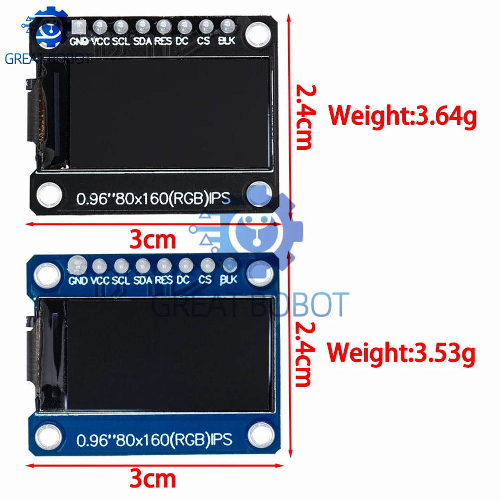 BS TFT Display 0.96 inch IPS 8P SPI HD 65K Full Color LCD Module ST7735 Drive IC 80*160 (Not OLED) For Arduino black