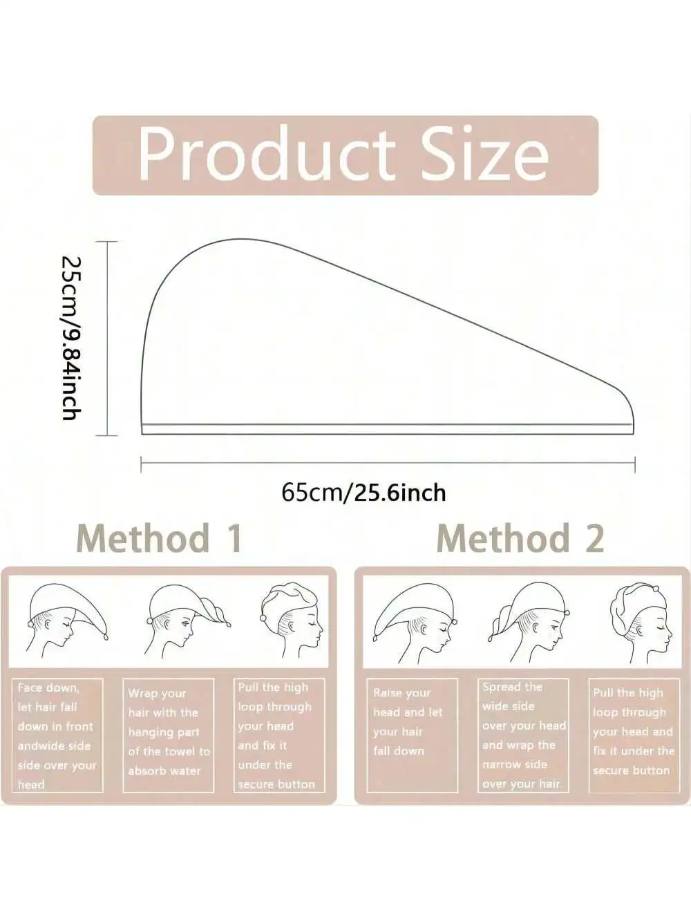Solid color hair towel Textured dry hair cap 9.8 ''X 25.5'' absorbent hair towel wrap for button-down women