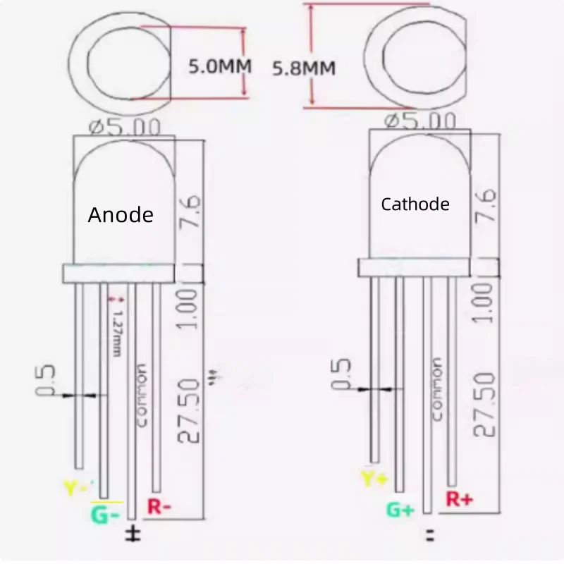 50PCS 5mm full-color LED RGB red/green/blue Common Cathode/Anode Four feet transparent highlight color light 5mm diode colorful