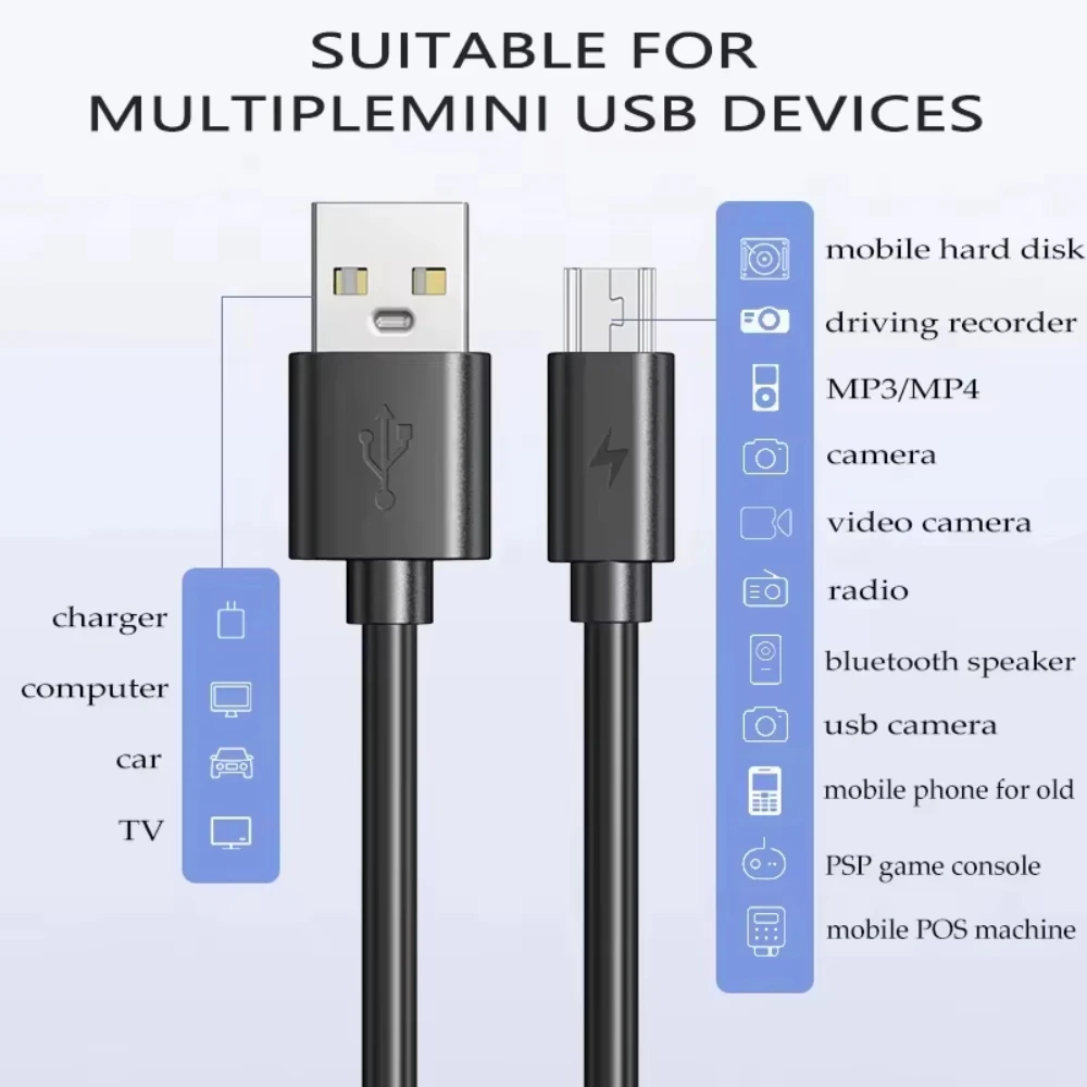 Braid Mini USB To USB Fast Data Transfers Charger Cable for MP3 MP4 Player Car DVR GPS Digital Camera HDD USB-A Cord 0.25m1m2m