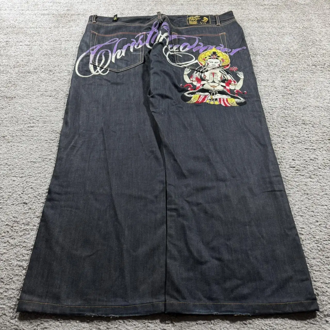 Baggy Wide Leg Y2K 2000s Loose Jeans Embroidered Buddha Casual Denim Pants Harajuku High Waist Straight Jeans Y2k Women Clothing