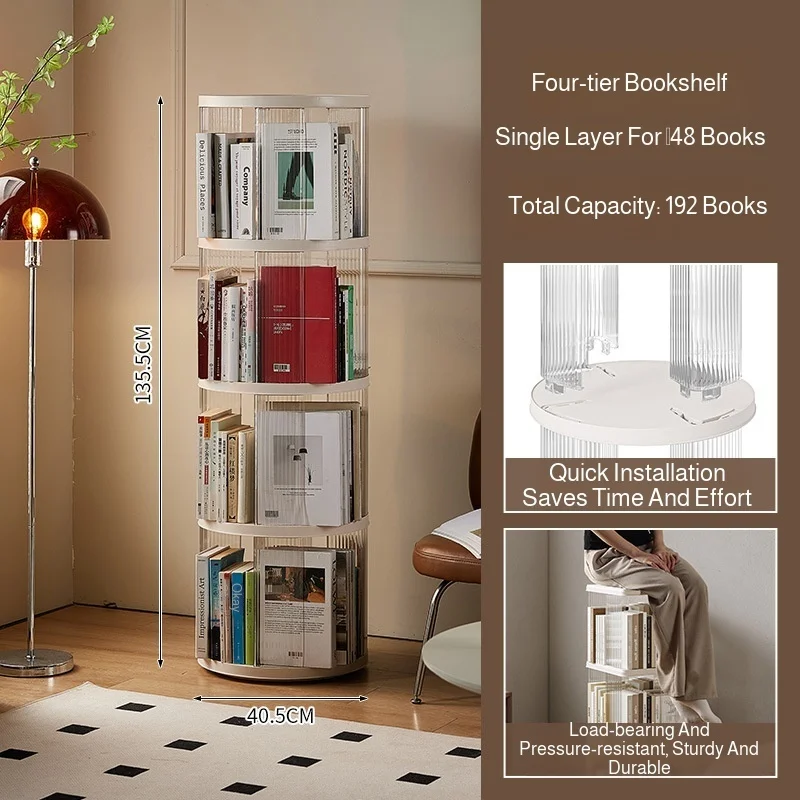 Rotating Bookshelf 360-Degree Home Floor-To-Ceiling Simple Children's Bookcase Living Room Large-Capacity Storage Rack