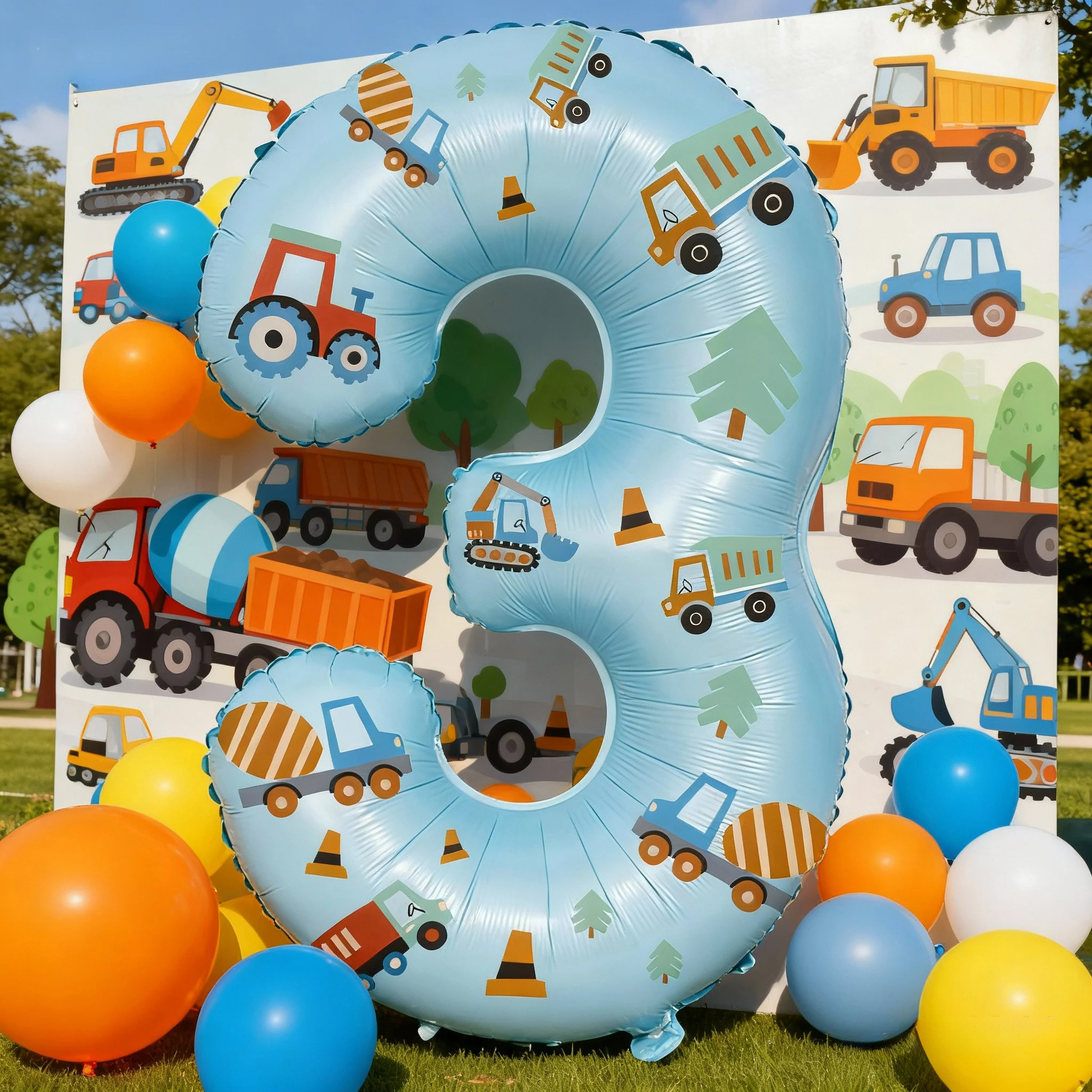 32in Foil Number Balloons with Construction Vehicle Stickers, 0-9 for Birthday Party Home Decor, Graduation/Halloween/