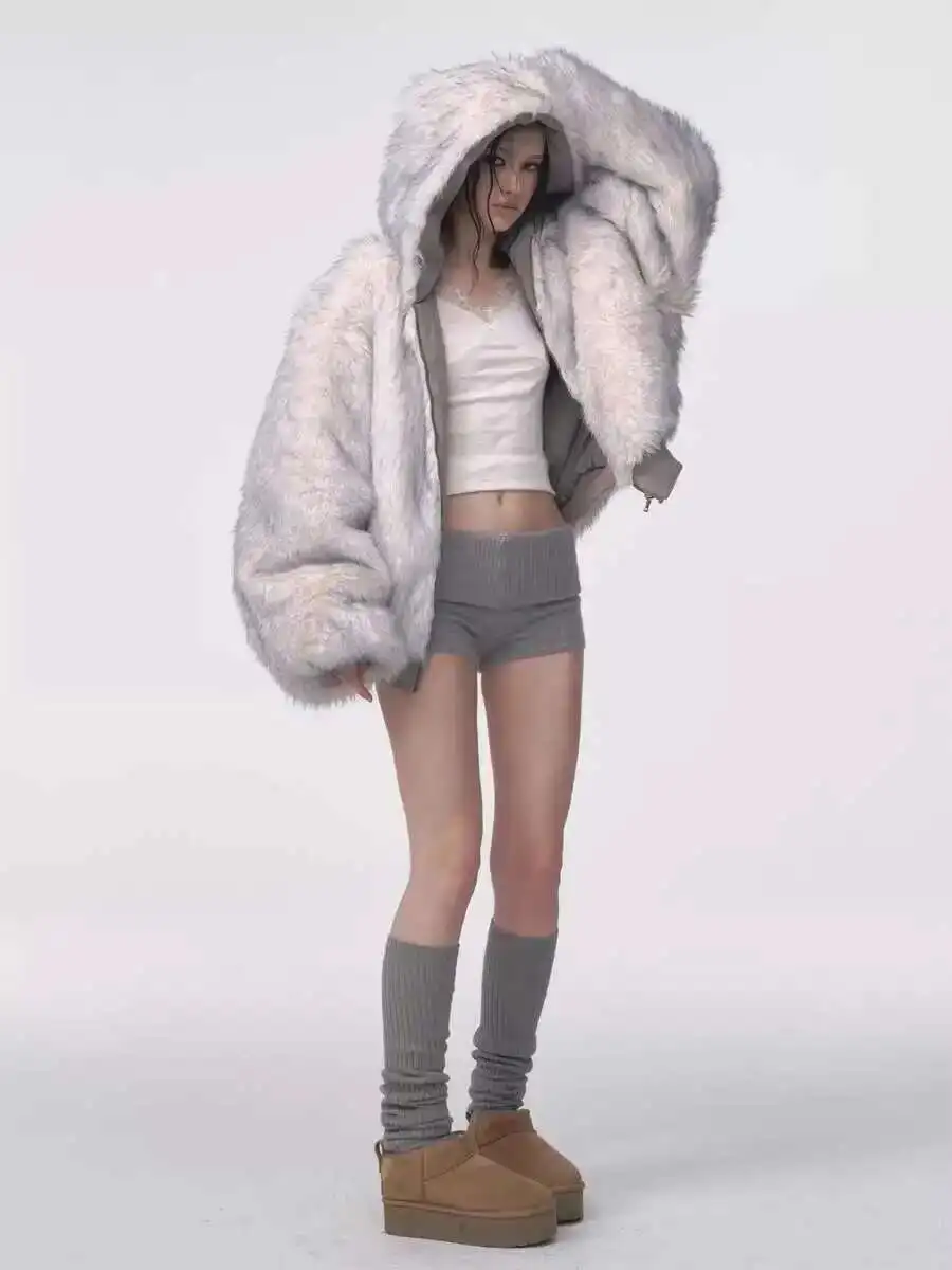 aliexpress , ali , shop , ali shop , online , prodavnica , online shop , online prodavnica , kupujem , prodajem , Winter American Retro Fur Coat Women Padded Hooded Cotton-Padded Jacket Plush Casual Street Gothic Harajuku Oversize Coat