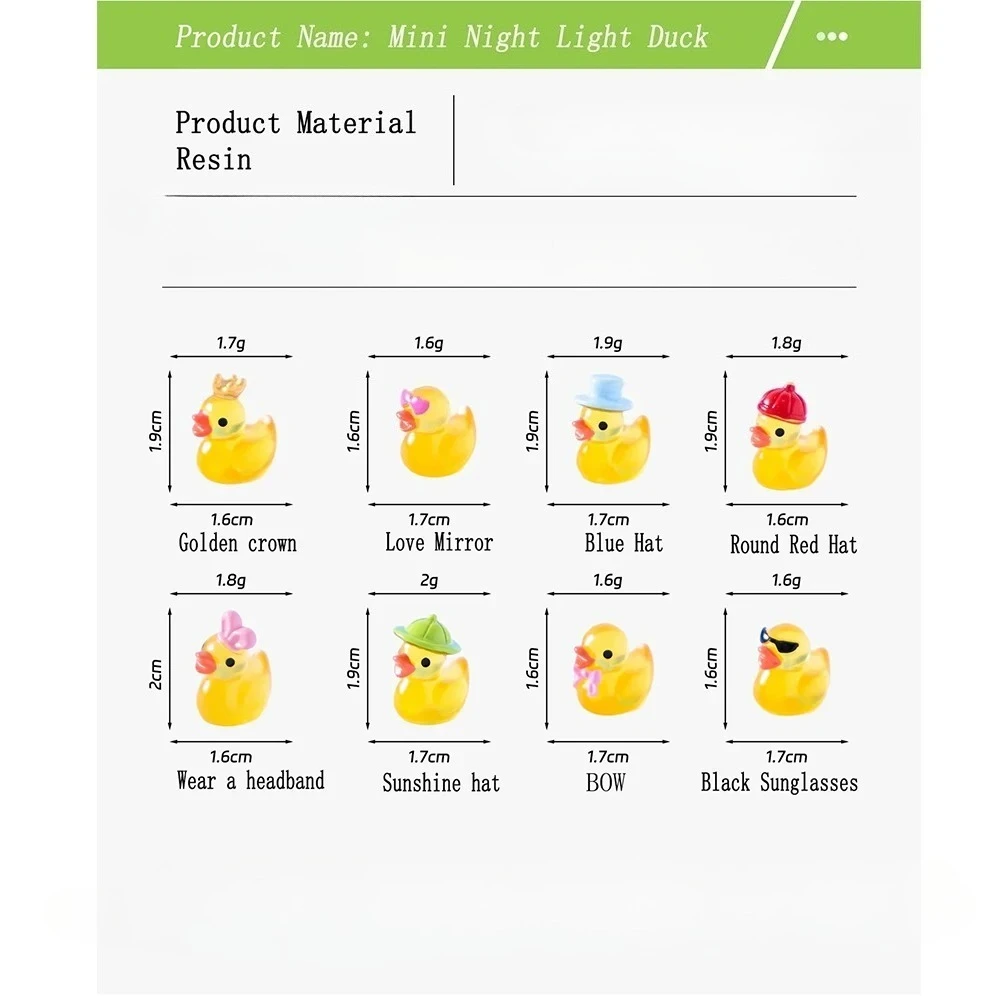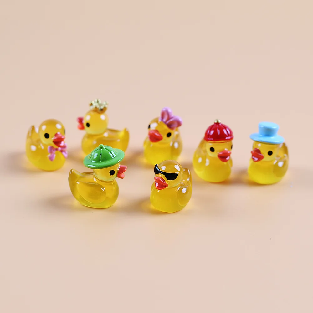 100/50pc Luminous Resin Mini Yellow Duckling Miniatures Doll House Glow in the-Dark Duck Figurines for DIY Aquarium Garden Decor