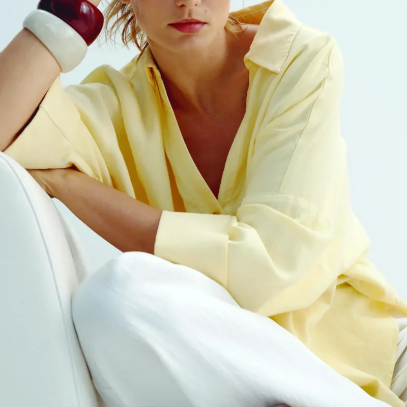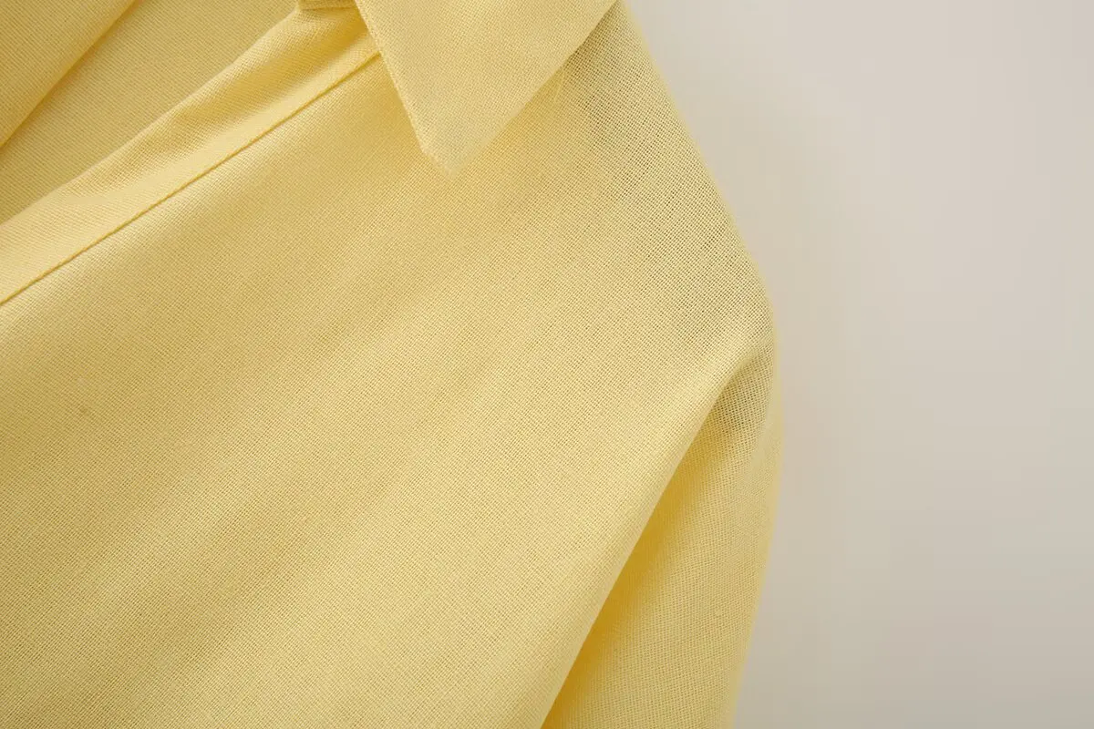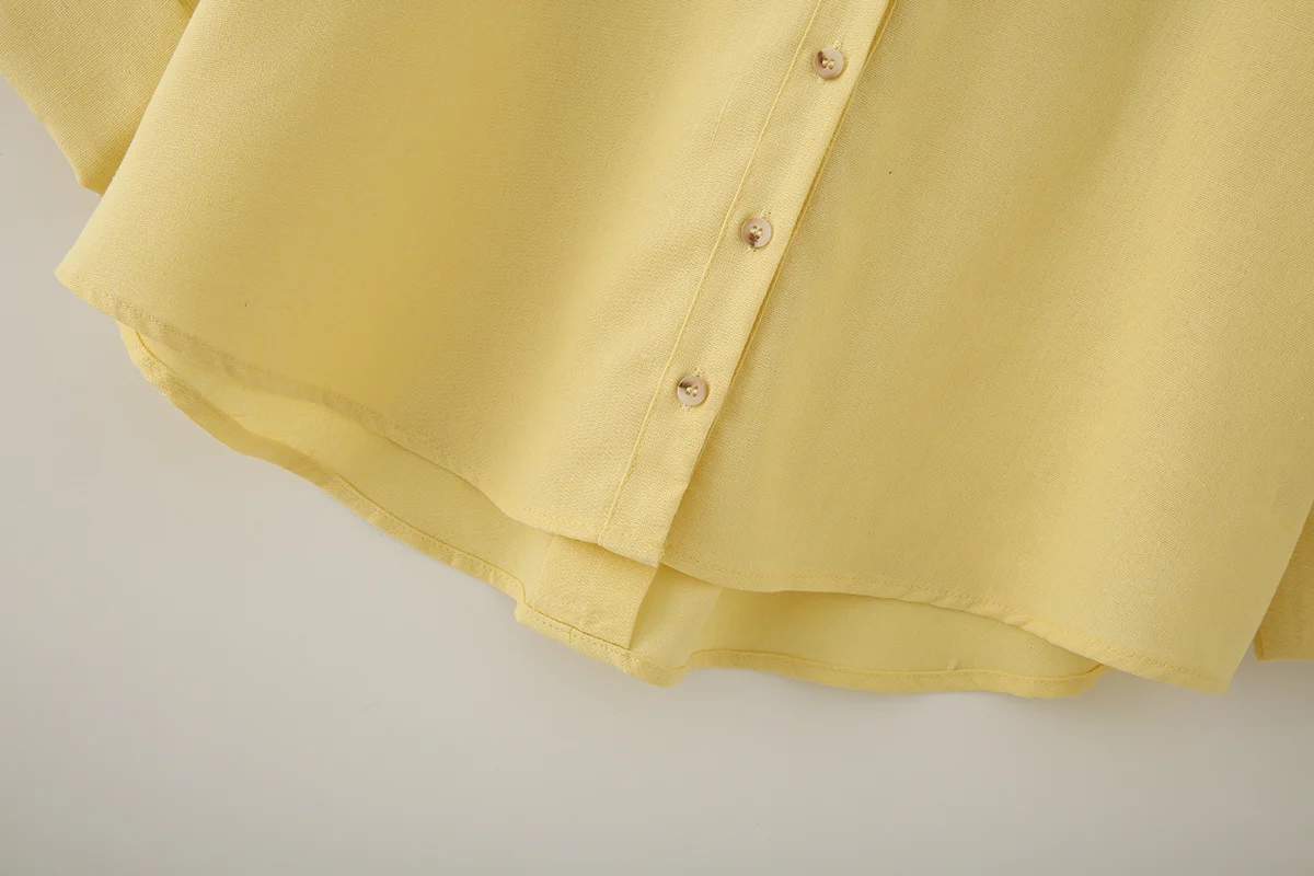 2025 Chemise Femme and Summer Women's Casual FashionYellow Blouse Work Simple Loose Sleeves Single breasted Collar