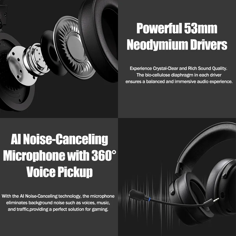 MCHOSE V9 pro E-Sports Headset with Microphone Tri-Mode Gaming USB Wireless 7.1 Channel Surround Sound Portable Audio Headphones