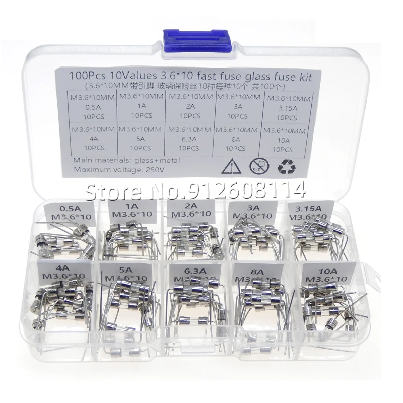 ALI shop - rezultati pretrage ... ... 100Pcs/Box 10 Value 3.6*10mm 250V Double Iron Cap Axial Glass Fuse Kit with Conductors 0.5A 1A 2A 3A 3.15A 4A 5A 6.3A 8A 10A ::: 2021 ::: :::