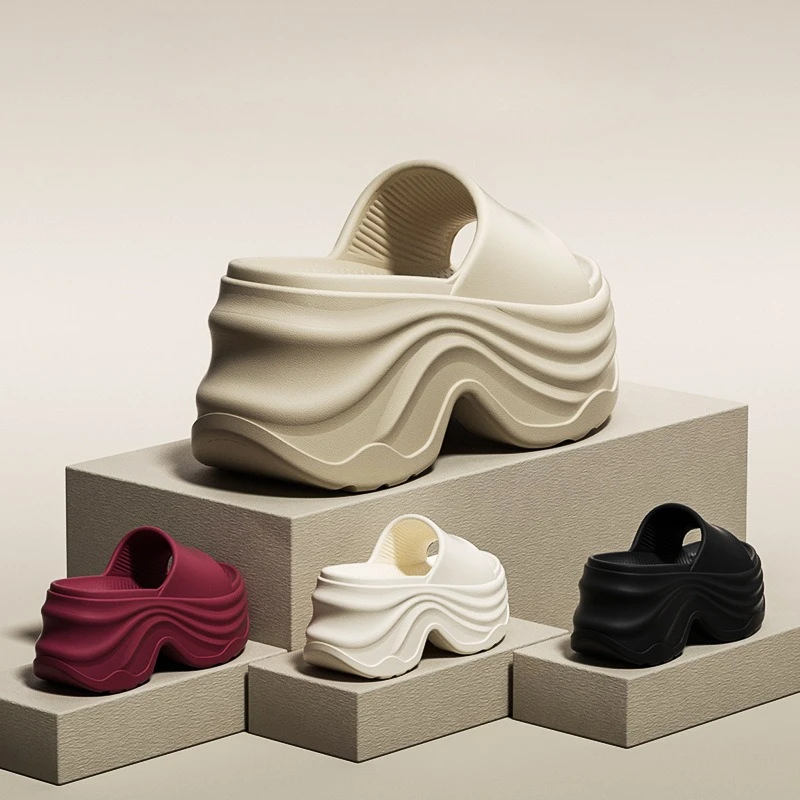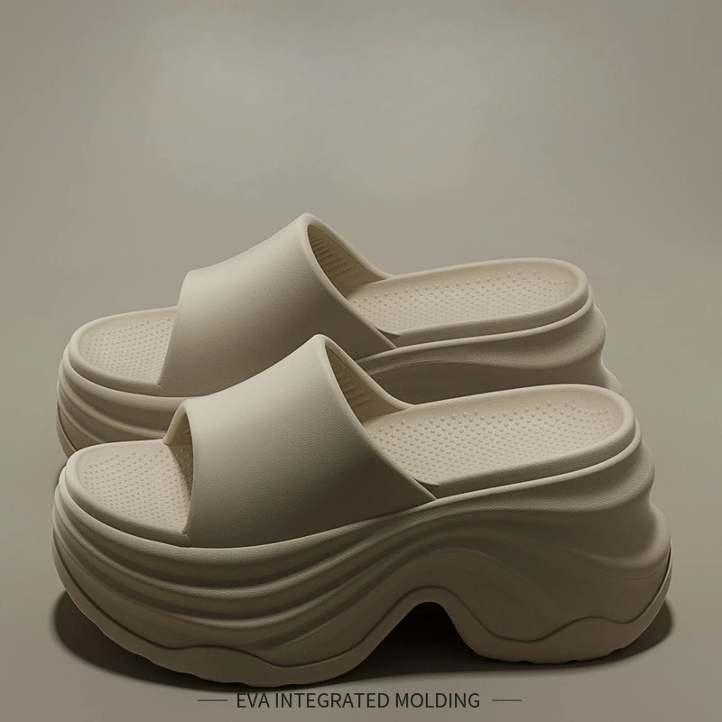 YNPO Solid Color EVA Platform Slippers Women Thick Sole Non Slip Beach Slides Sandals Lady Summer Soft Sole Wedge Heel Slipper