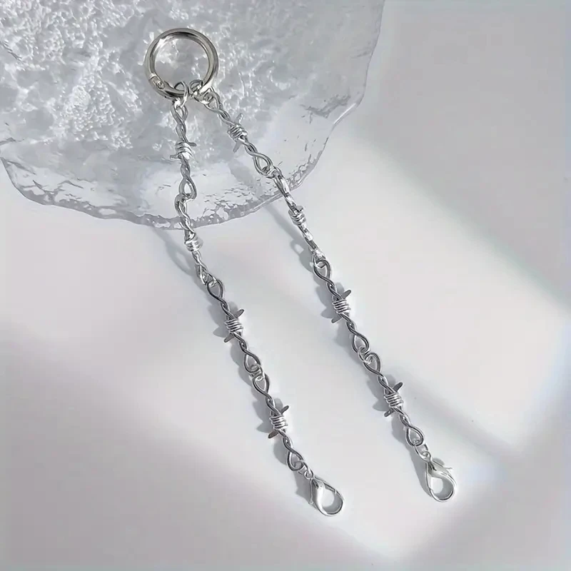 1pair/2pcs Gothic Punk Style Detachable Double Thorn Shoe Decor Chain Easy-Release Buckle Mechanism Ideal DIY Fashion Accessory