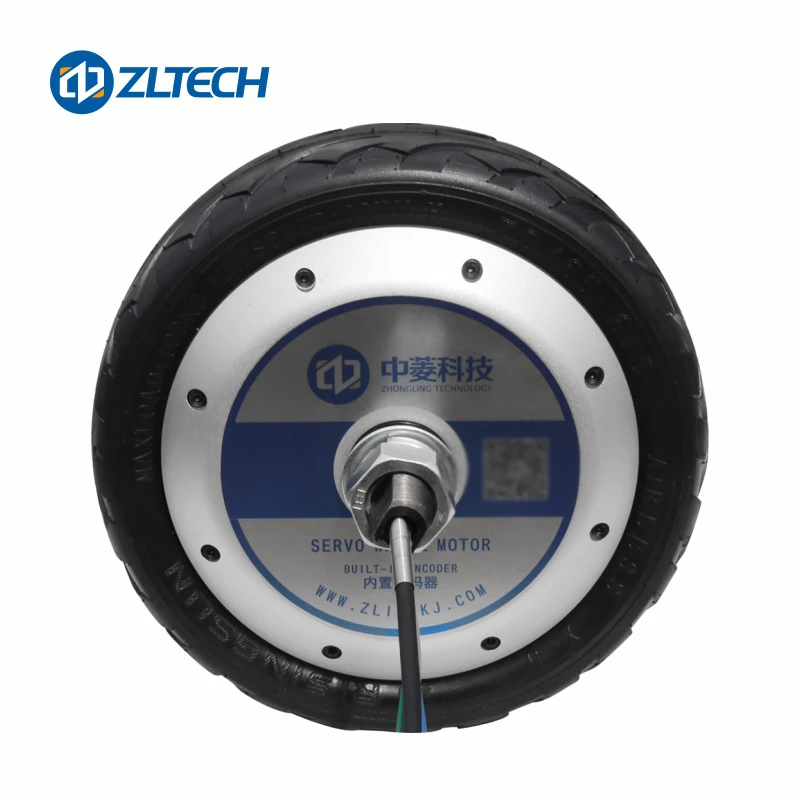 ZLTECH 9.5inch 48V 300kg Load 800W 1024-wire Encoder Waterproof IP65 Gearless BLDC Wheel Hub Motor With Rubber Tire For Robot