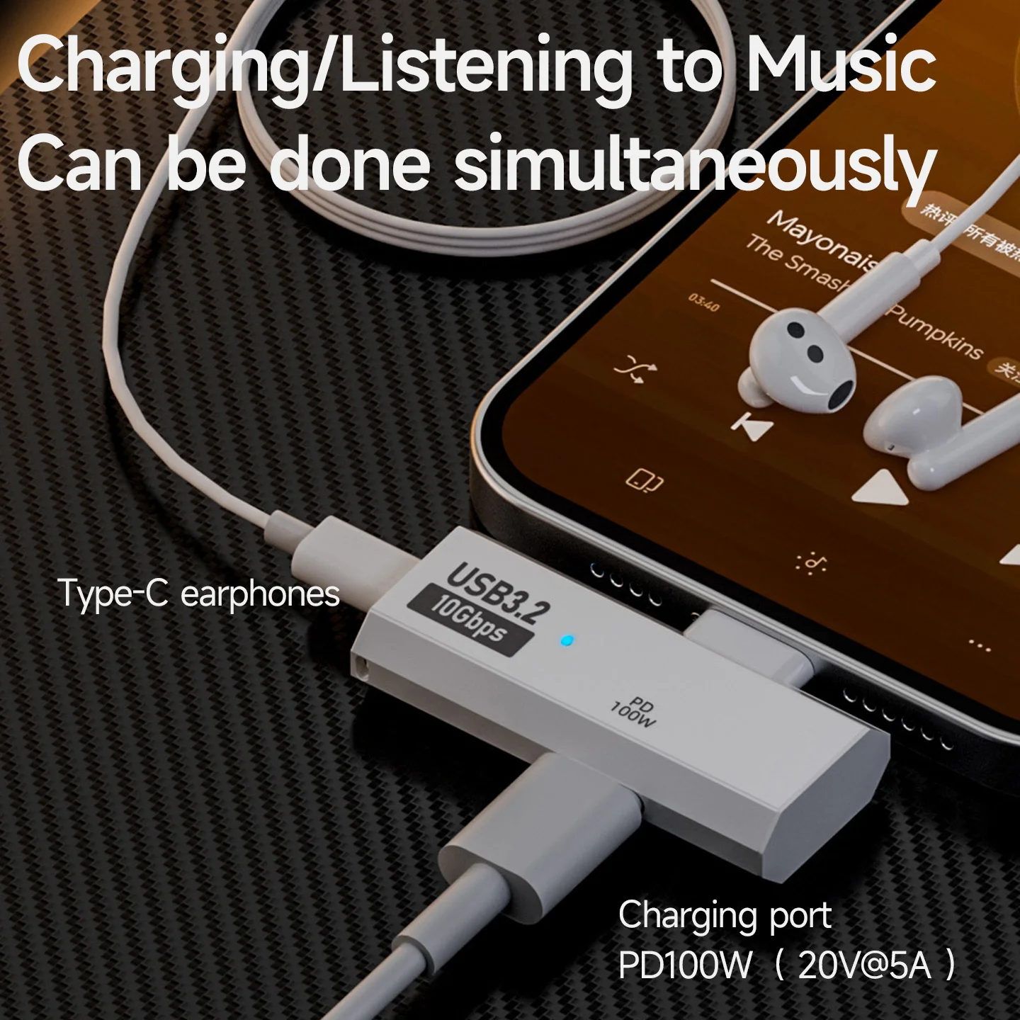 2 in 1 USB3.2 10Gbps USB Type-C Adapter OTG Fast Charging Converter PD 100W for Phone Tablet Macbook Xiaomi Laptop Tablet