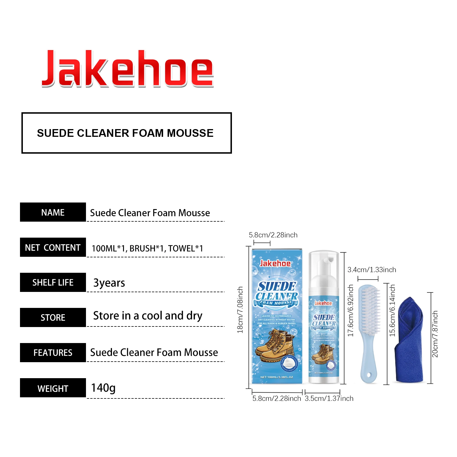 JAKEHOE Suede Foam Cleaner Mousse No-wash Cleaning Agent Univeral Decontamination for Suede Shoes Clothes Bag Car Seat Furniture