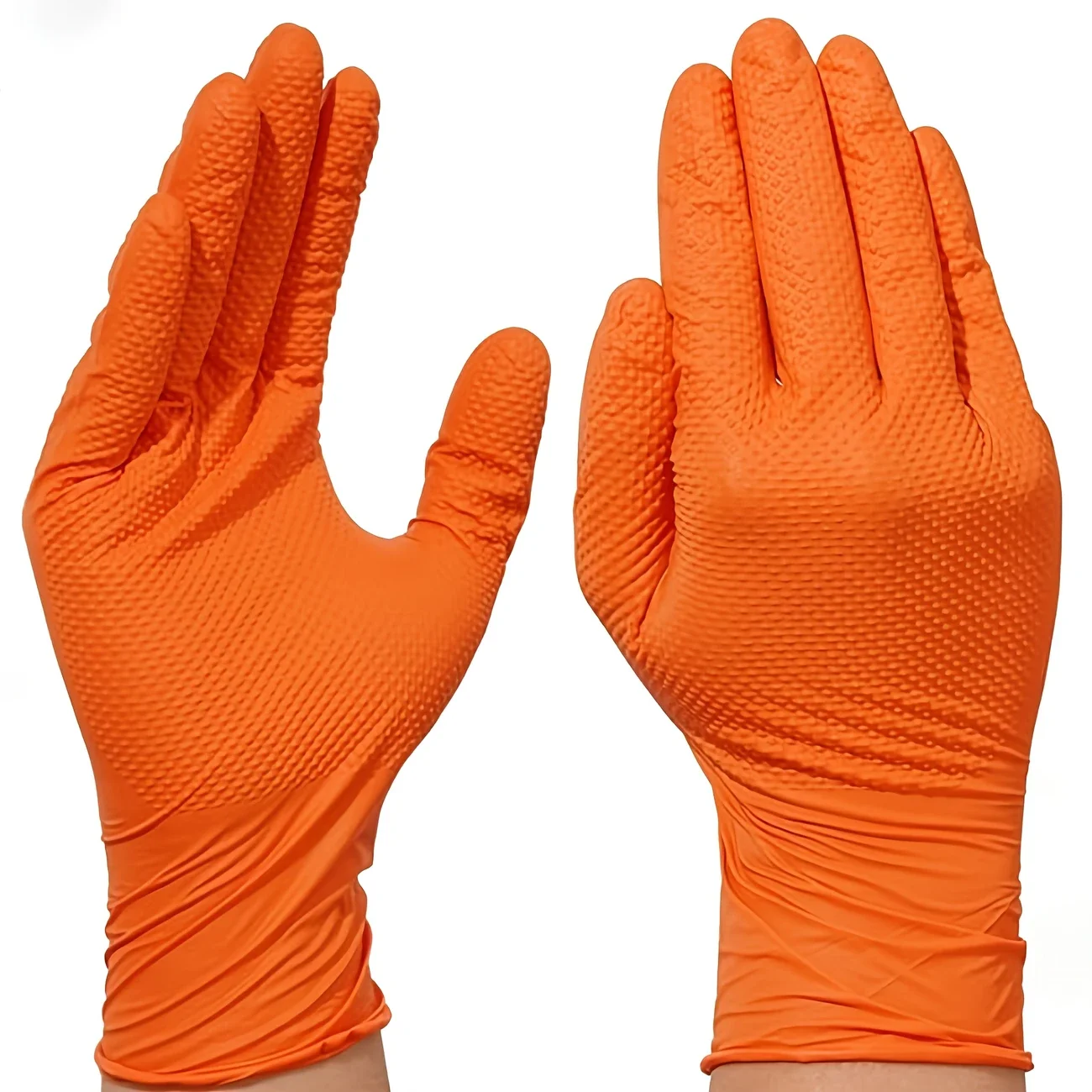 8Mil Heavy Duty Nitrile Gloves Disposable Gloves with Raised Diamond Textured Graden Industrial Mechanic Auto Safety Work Gloves