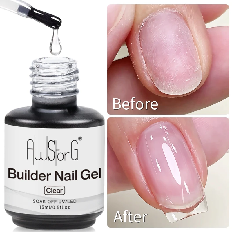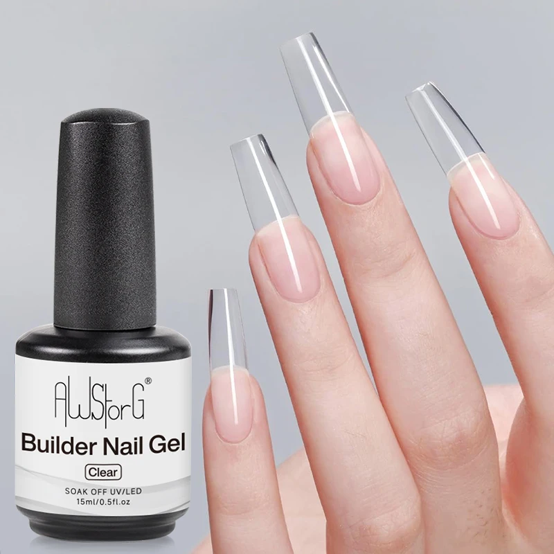 AWStorG 15ML Clear Quick Builder Nail Gel Varnish Semi Permanent Acrylic Crystal Clear Nude Gel Nail Polish UV Construction Gel
