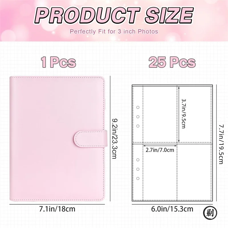 A5 Notebook Photocard Binder 25pcs Page(4 Grids) PU Leather Loose Leaf Organizer Photo Binder Book Kpop Photo Albums Idol Cards