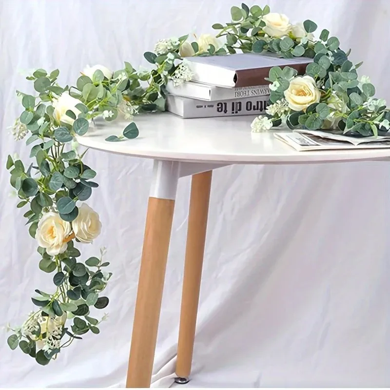aliexpress , ali , shop , ali shop , online , prodavnica , online shop , online prodavnica , kupujem , prodajem , 70inch Eucalyptus and Rose Garlands - Plastic Flower Vines for Home Decor, Wedding and Engagement Table Decorations, No Power Required, Suitable for Multiple Room Types, Feather-Free Plastic Flower Vines, Ideal Choice for Party Tabletops and Indoor Wall Backgrounds