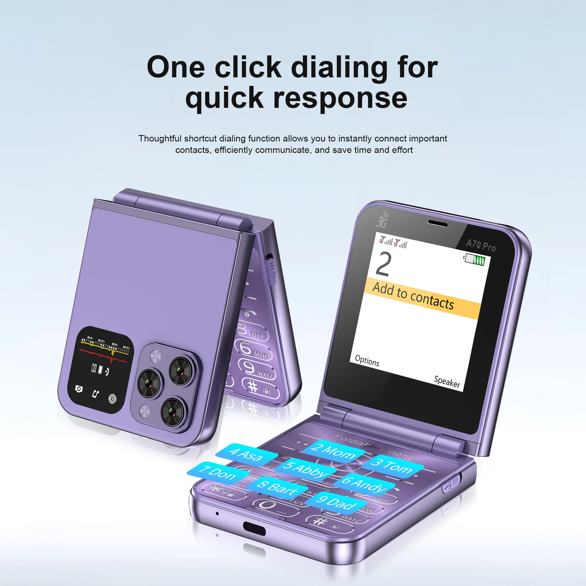 HOT SALE SERVO A70 PRO 3G Foldable Phone Speed Dial Auto Call Record Flashlight Blacklist 2 SIM Card 2.6inch Flip Phone FM Radio