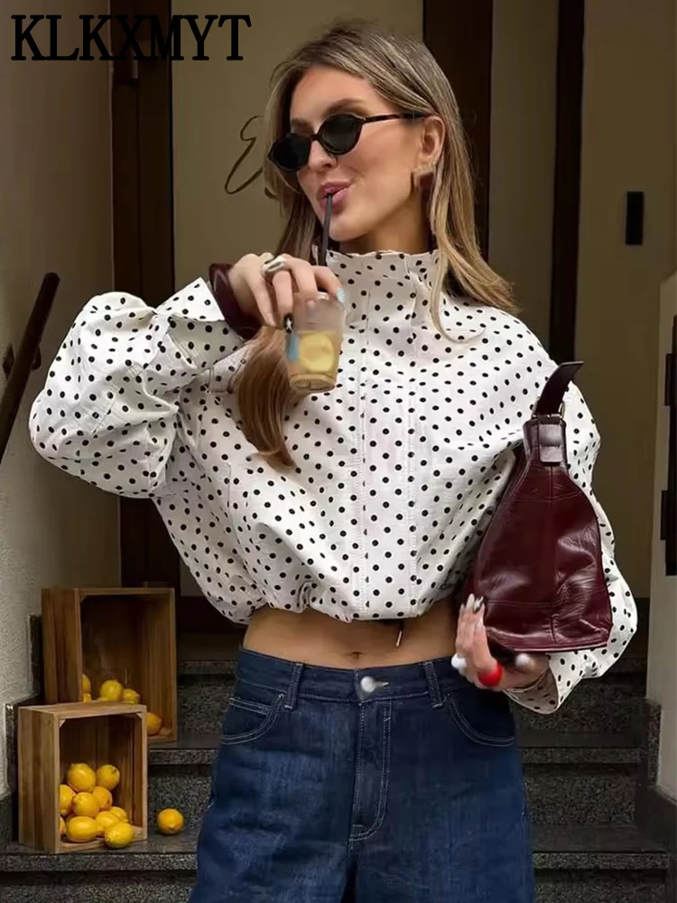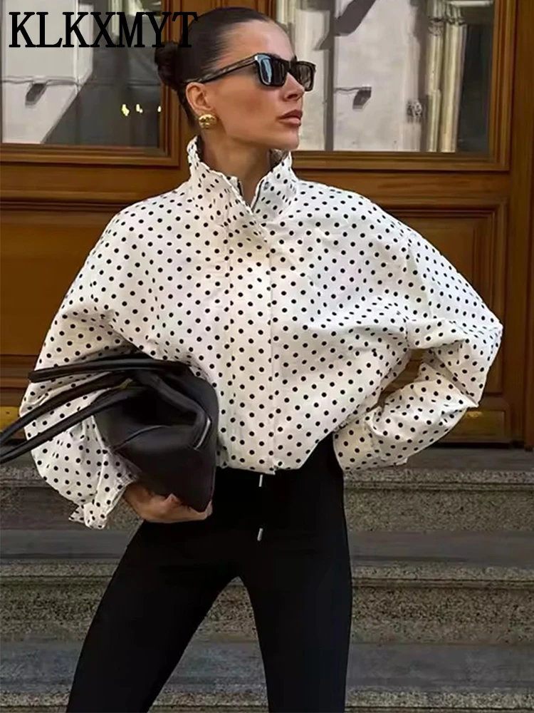 Polka Dot Print Short Coats Women's High Street Long Sleeve Jackets for Women 2026 Elegant Office Ladies Casual Outerwear