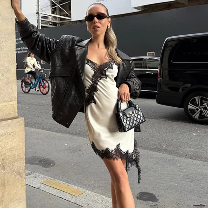 Tornova Lace Mini Spaghetti Strap Dress For Women Backless Slit Dress Evening Party Bodycon Female Elegant Dress High Waist