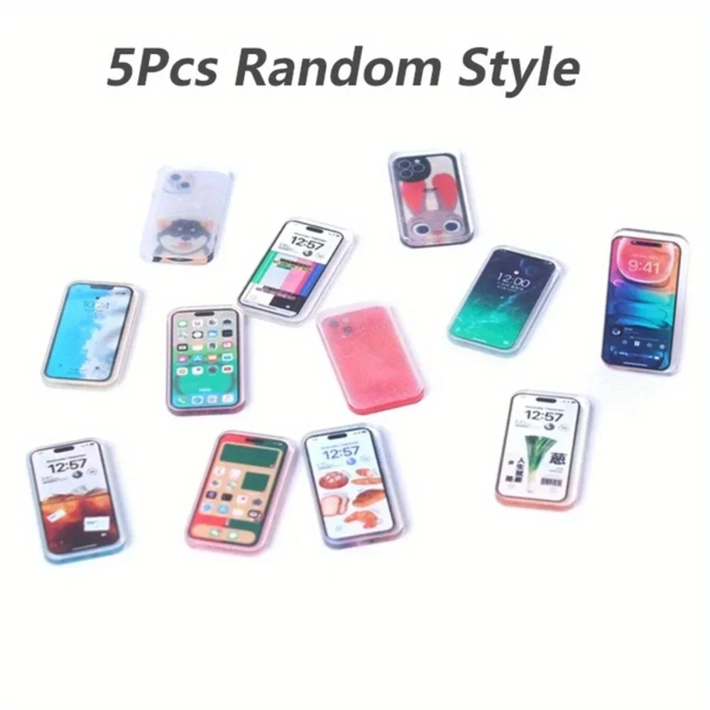 5PCS 1:12 Scale Miniature Smartphone Models - Realistic Dollhouse Accessories, Tiny Mobile Phone Props for Pretend Play