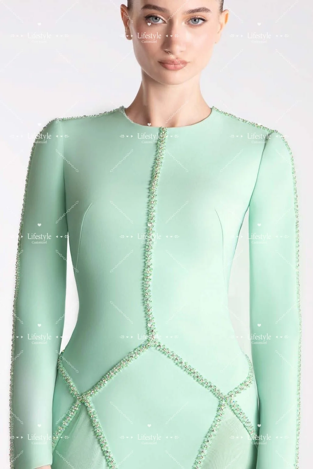 aliexpress , ali , shop , ali shop , online , prodavnica , online shop , online prodavnica , kupujem , prodajem , Customized Mint Round Neck Prom Dresses 2025 Long Sleeves Beads Luxury Evening Dress Long Wedding Formal Party Gown