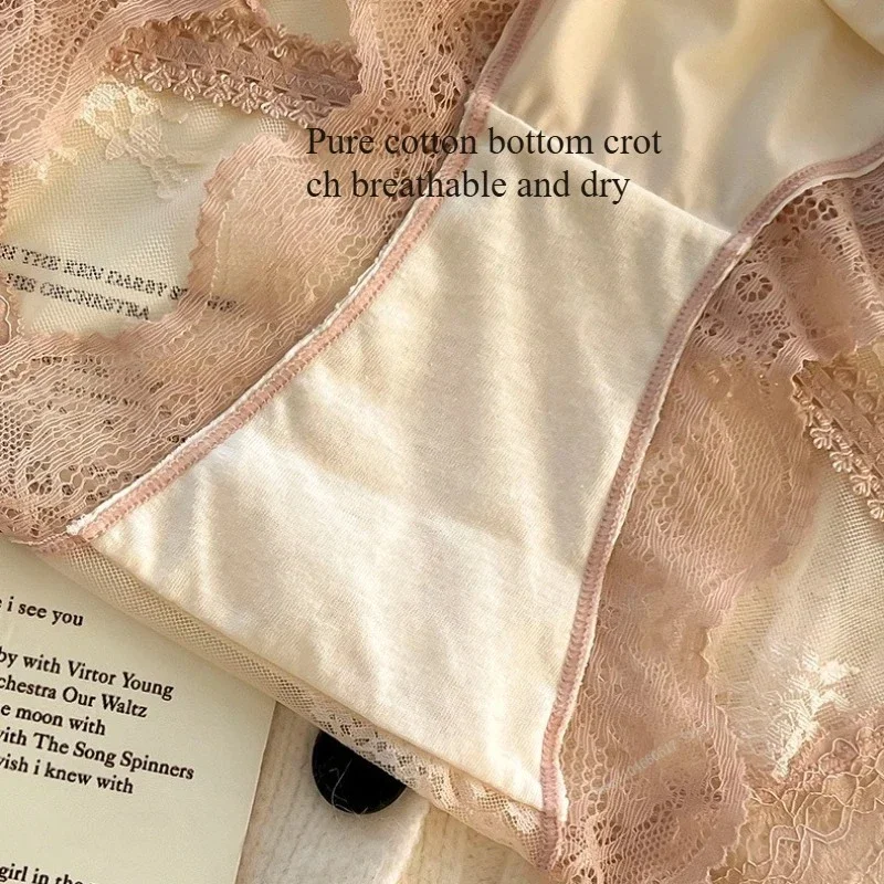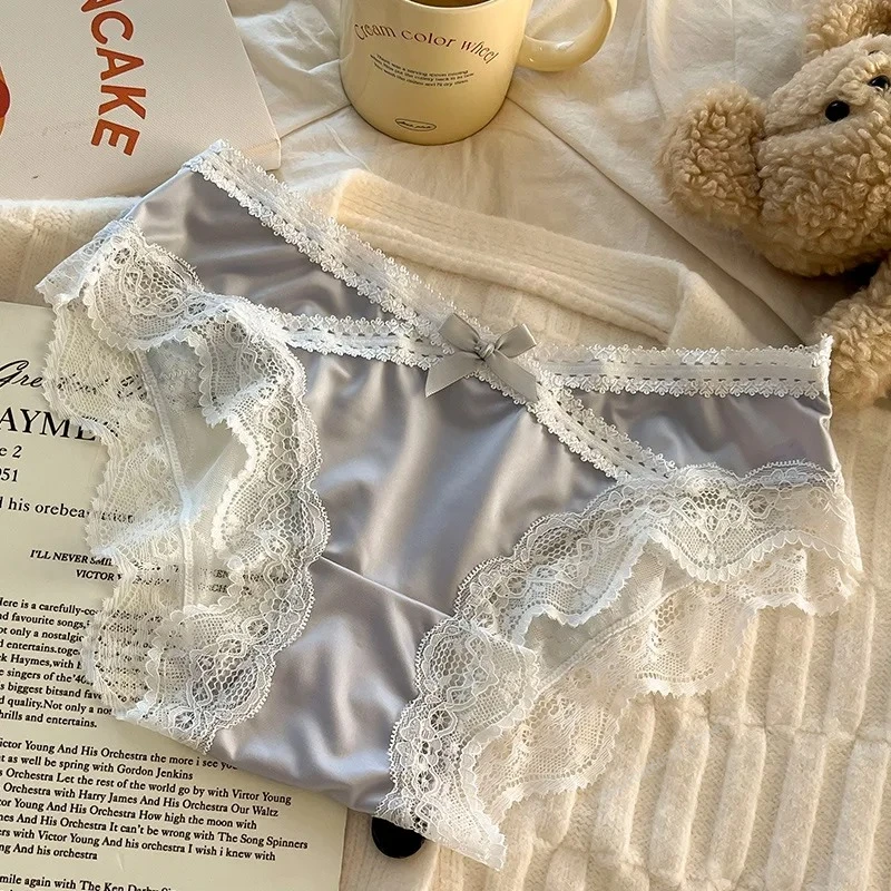 French Lace Underwear Pure Cotton Crotch Satin Triangle Panties Underwear Low-rise Panties Soft Briefs Comfortable Lingerie