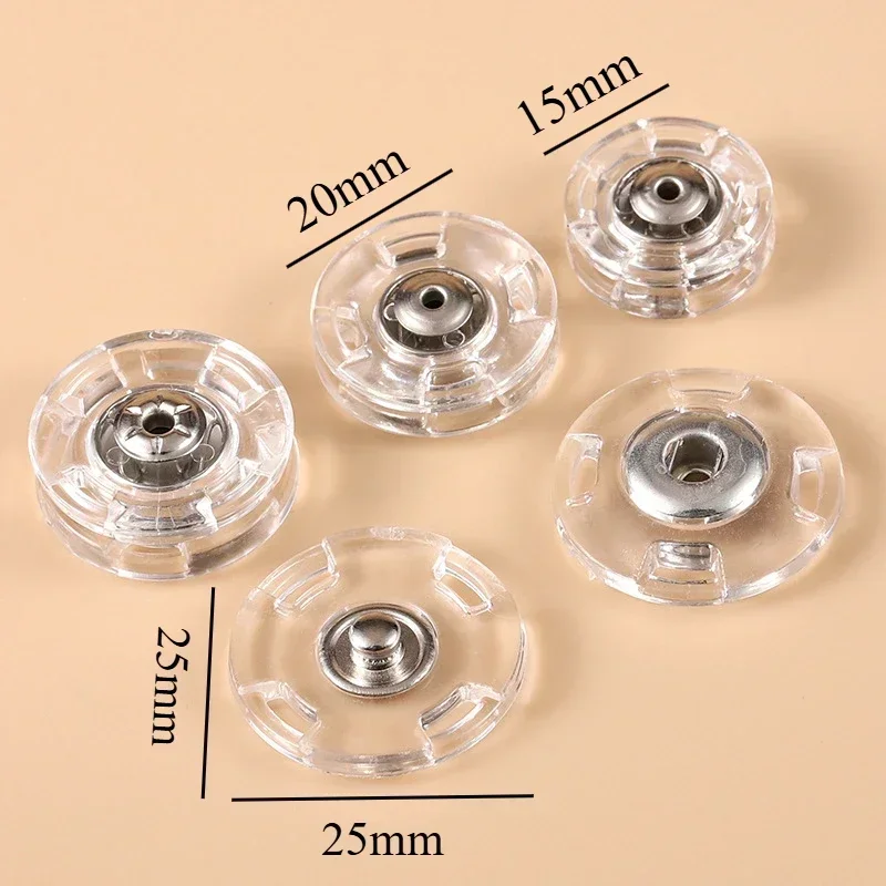 10-30 Pairs Transparent Round Snap Button Invisible Acrylic Concealed Coat Button Sweater Baby DIY Clothes Sewing Accessories