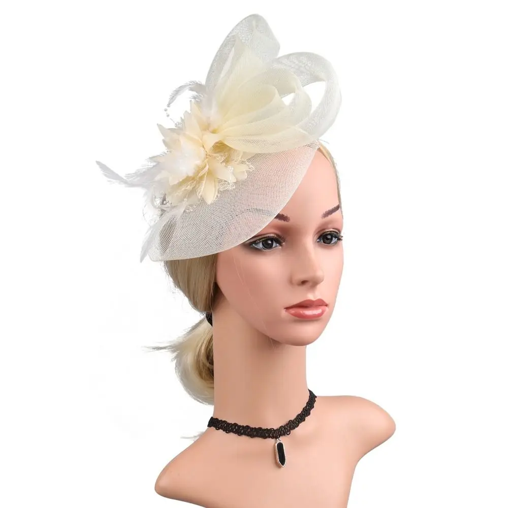 Formal Dress Small Top Hat Headband British Retro Luxury Fascinator Headdress Exquisite Clear Beads Wedding Feather Hat Headband