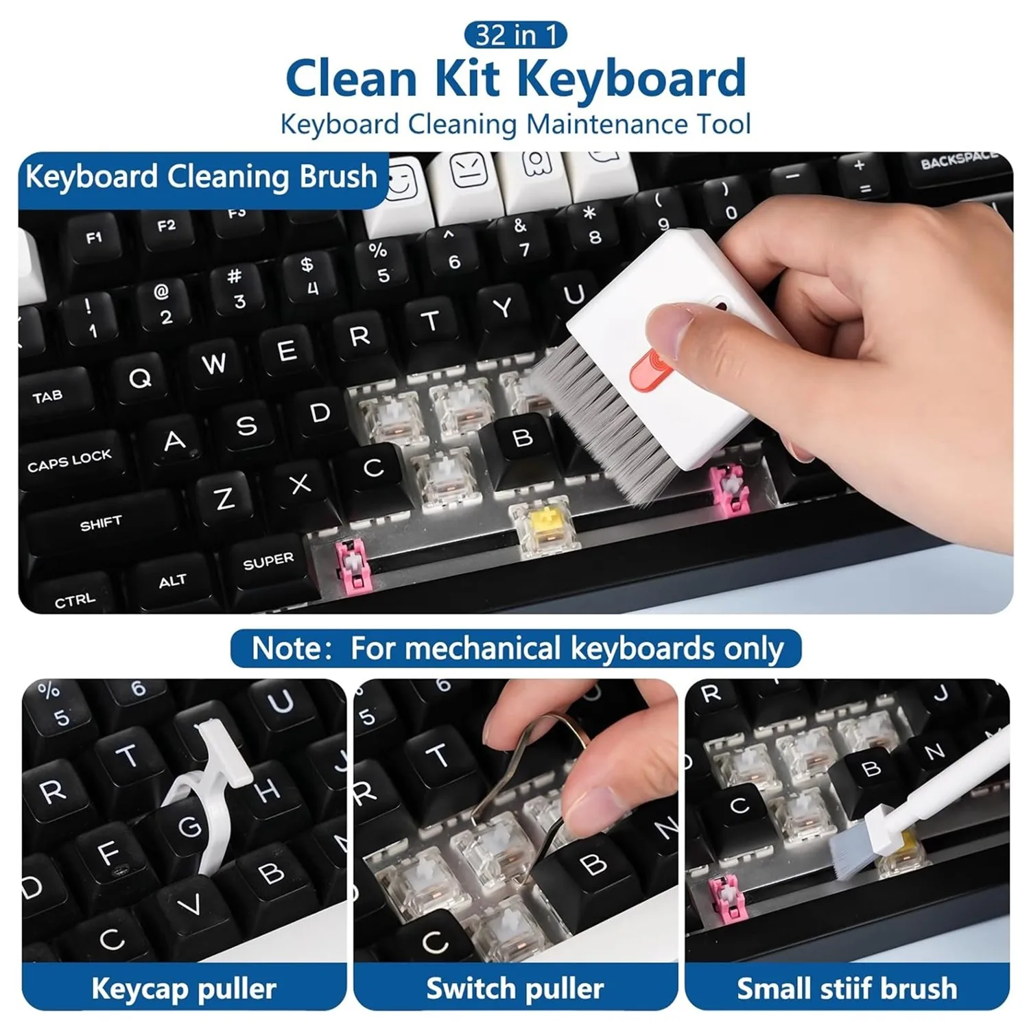 20/32-in-1 Multi-Functional Deep Cleaning Kit for iPhone Ports, AirPods, Keyboard, and Keycap Removal - Precision Tools