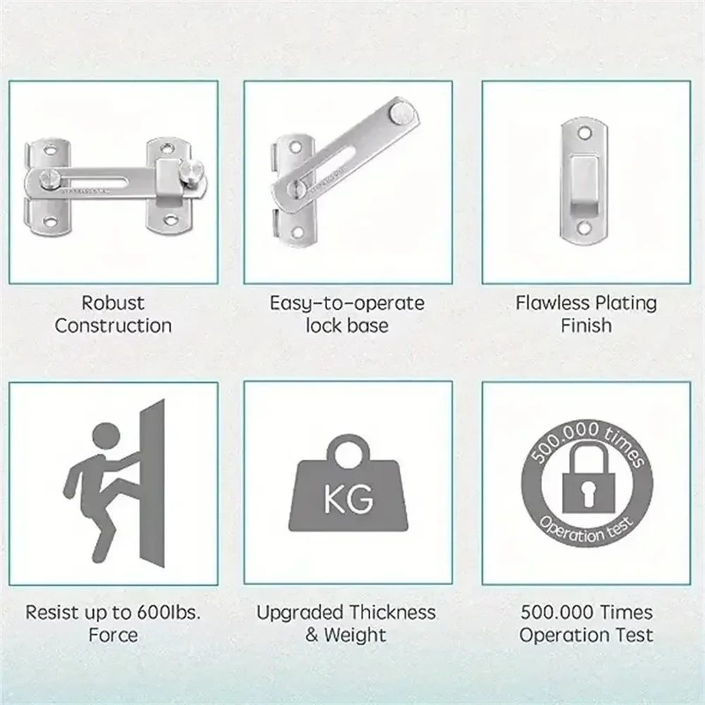 1Pcs Stainless Steel Sliding Barn Door Lock Hardware Gate Latches, Window Closet, Matte Black Silvery