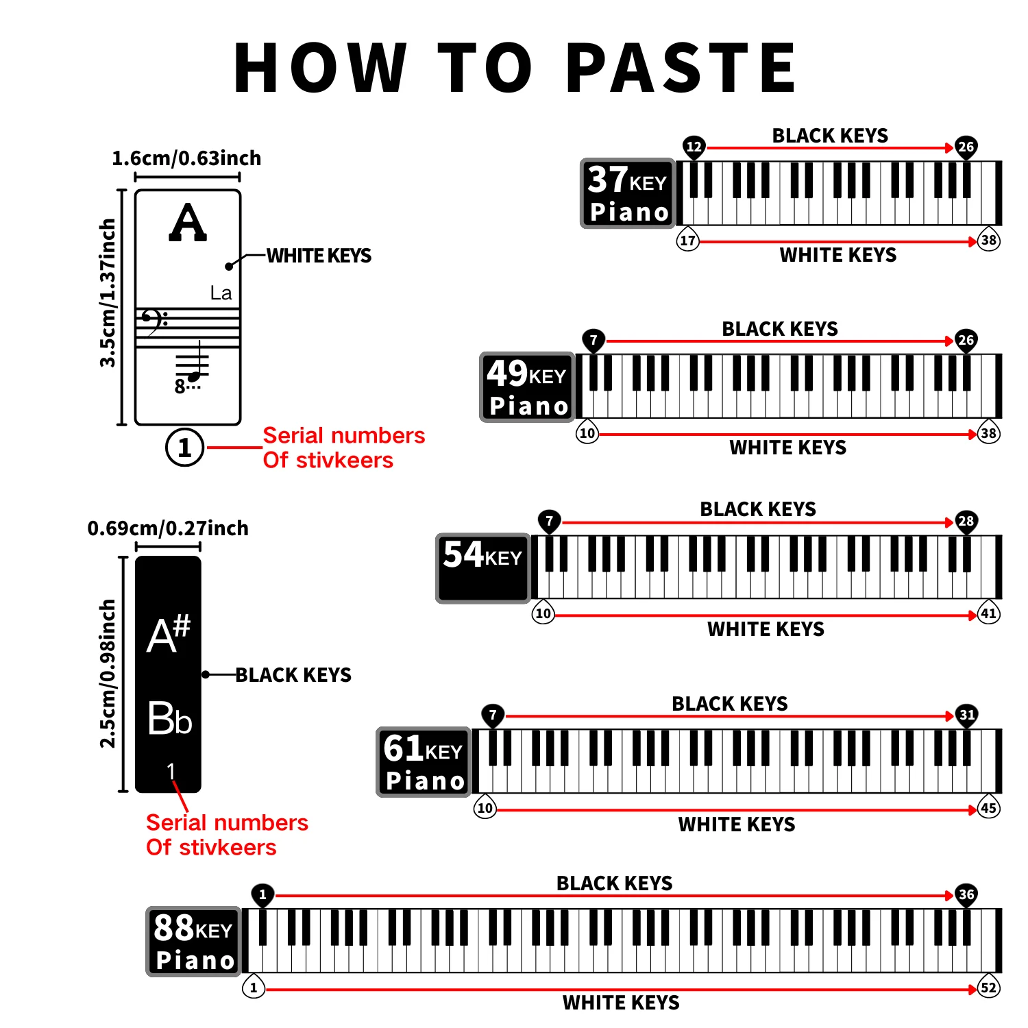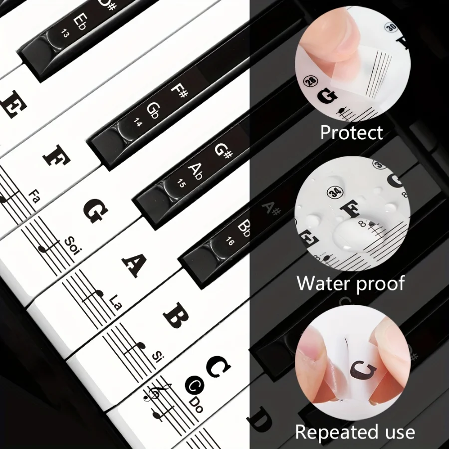 aliexpress , ali , shop , ali shop , online , prodavnica , online shop , online prodavnica , kupujem , prodajem , Large Bold Piano Key Sticker for Beginners - Removable letter label for 88/61/54/49/37 keys, easy to learn notes, black
