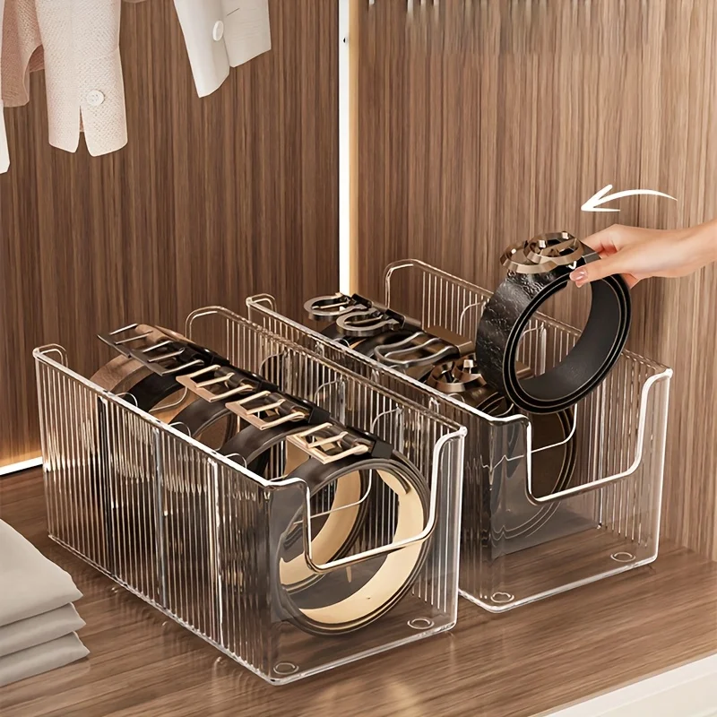 Transparent Plastic Belt Organizers and Detachable Compartments - Stylish Wardrobe Storage Boxes for Belts, Scarves and Ties