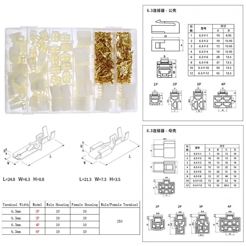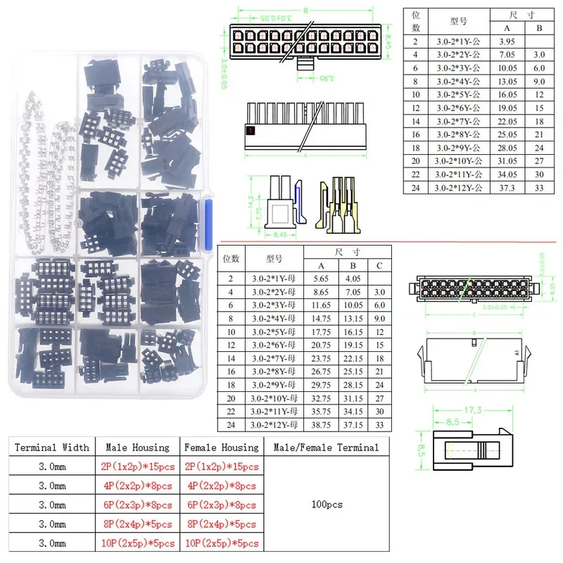 1.25mm/PH2.0mm/XH2.54mm/MX3.0mm/VH3.96mm SM2.54mm Dupont Terminal Male Female Pin Connector Assorted Kit