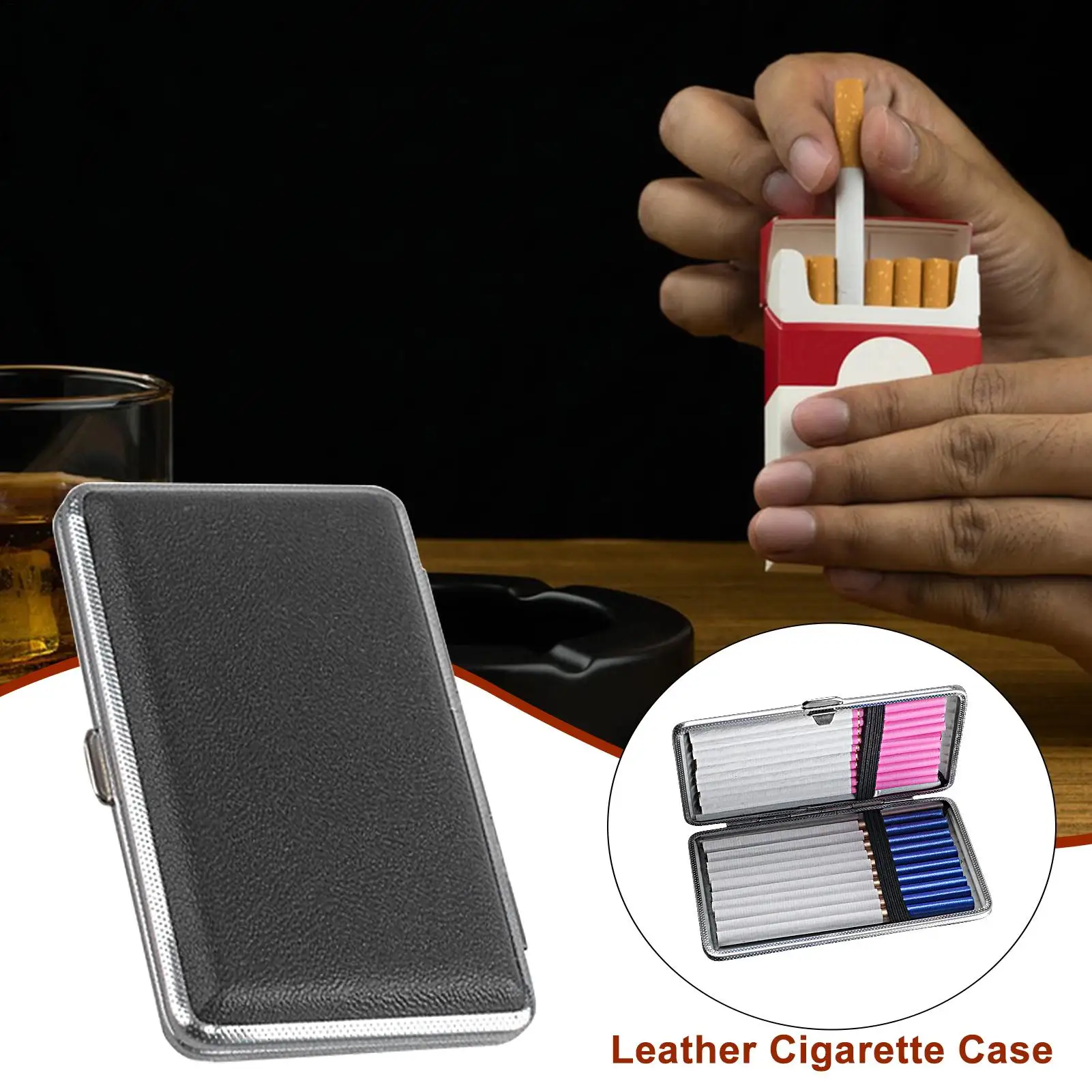 Portable Leather Cigarettes Case 20-piece Cigarettes Carrying Box Metal Frame Cigarettes Holders Flexible Slim Cigars Box