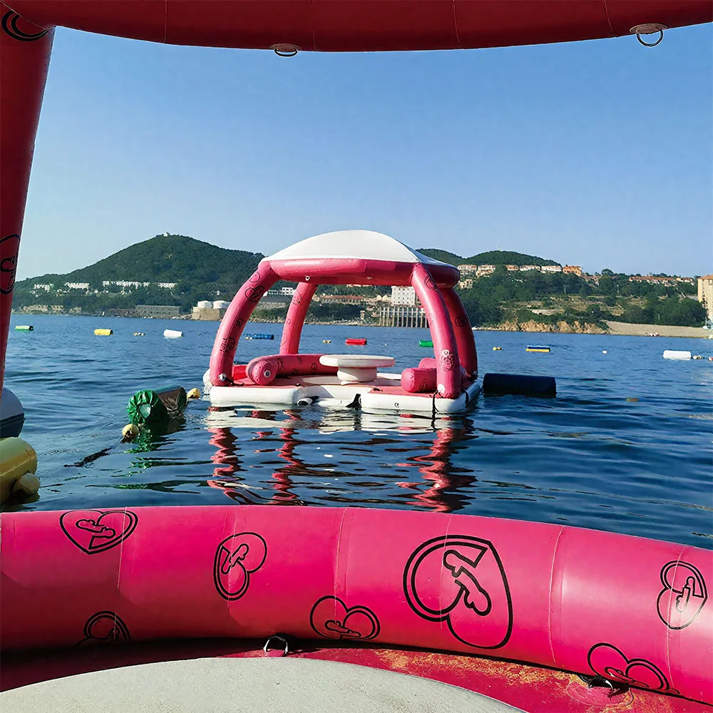 Hot Sale Commercial Customized Pink PVC Leisure Inflatable Floating Island