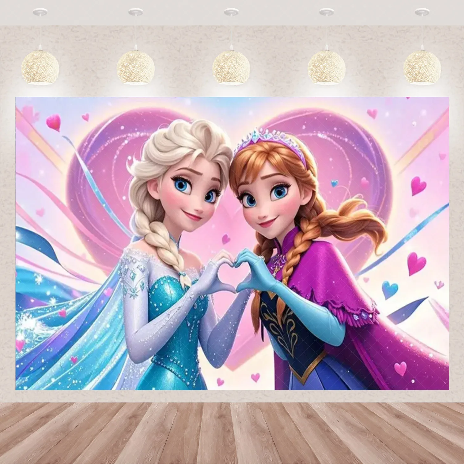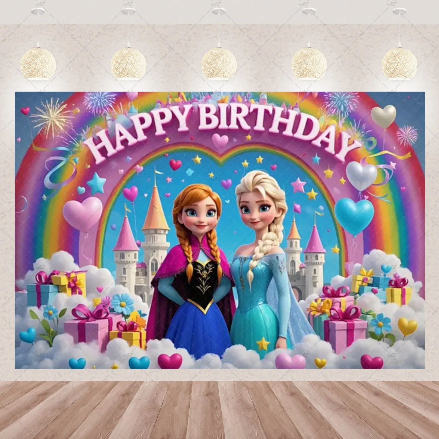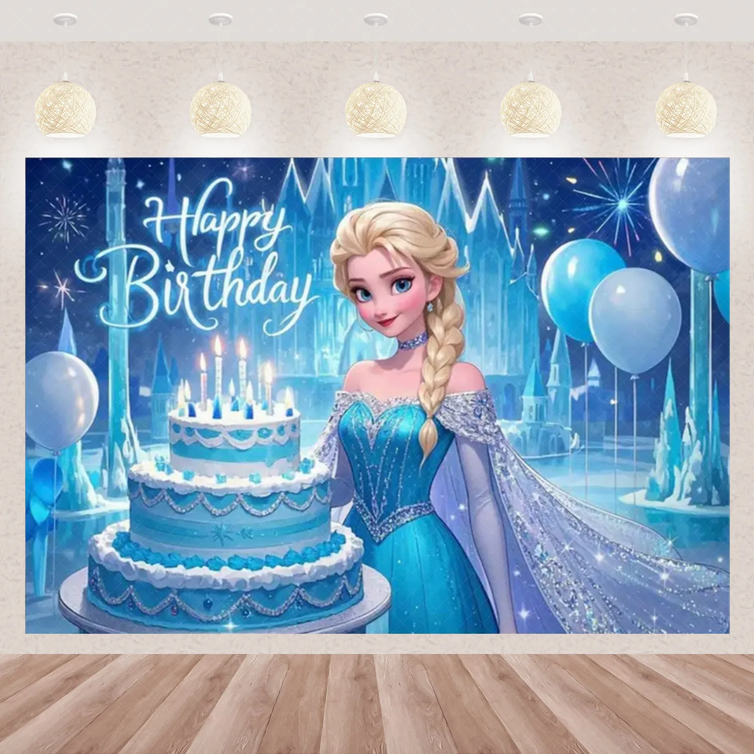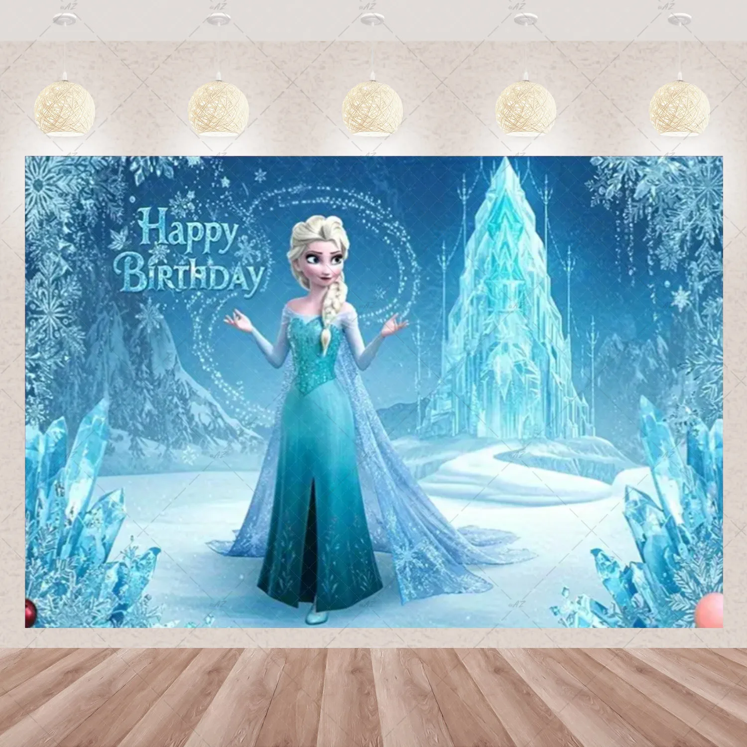 Frozen Elsa Anna Princess Theme Backdrop Frozen Birthday Party Decoration Baby Shower Supplies Background Photo Prop Girl Gift