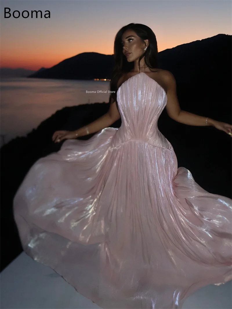 Booma A-Line Shiny Strapless Pleat Strapless Evening Dresses Formal Party Gowns for Women Sleeveless Prom Gown Customize 2025