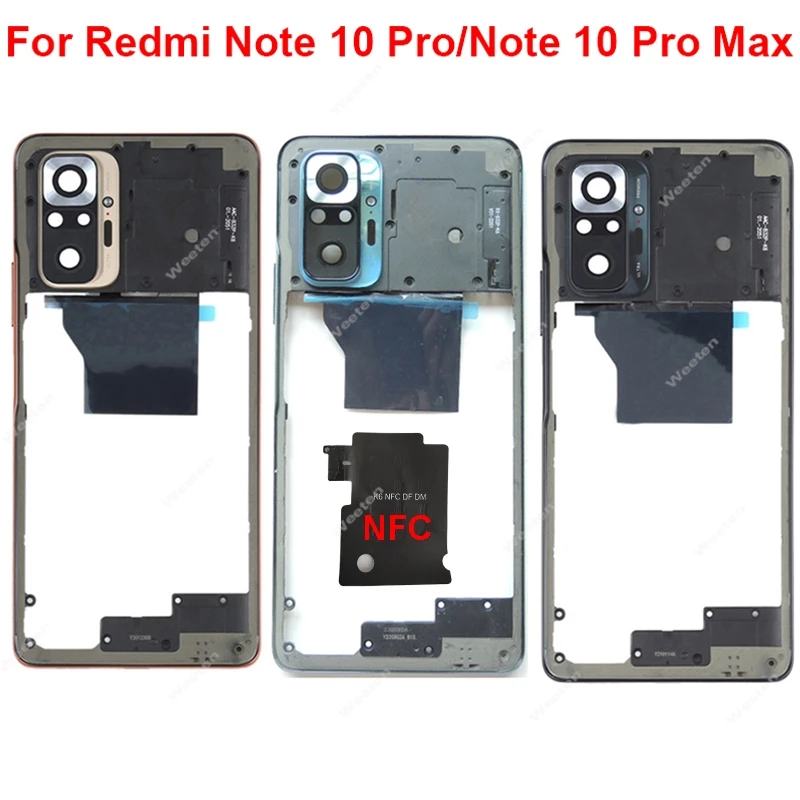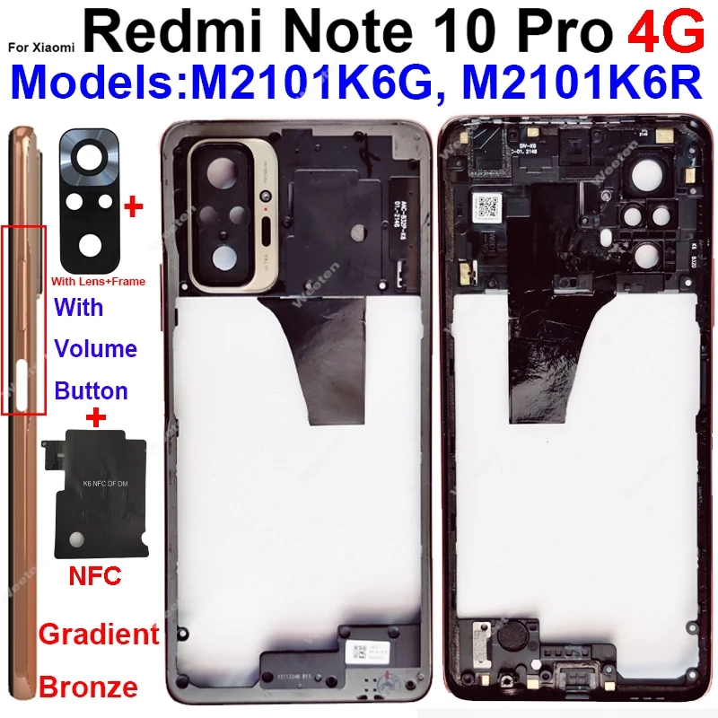 For Xiaomi Redmi Note 10 Pro Max Middle Frame Holder Bezel with Volume Side Key NFC Housing Cover