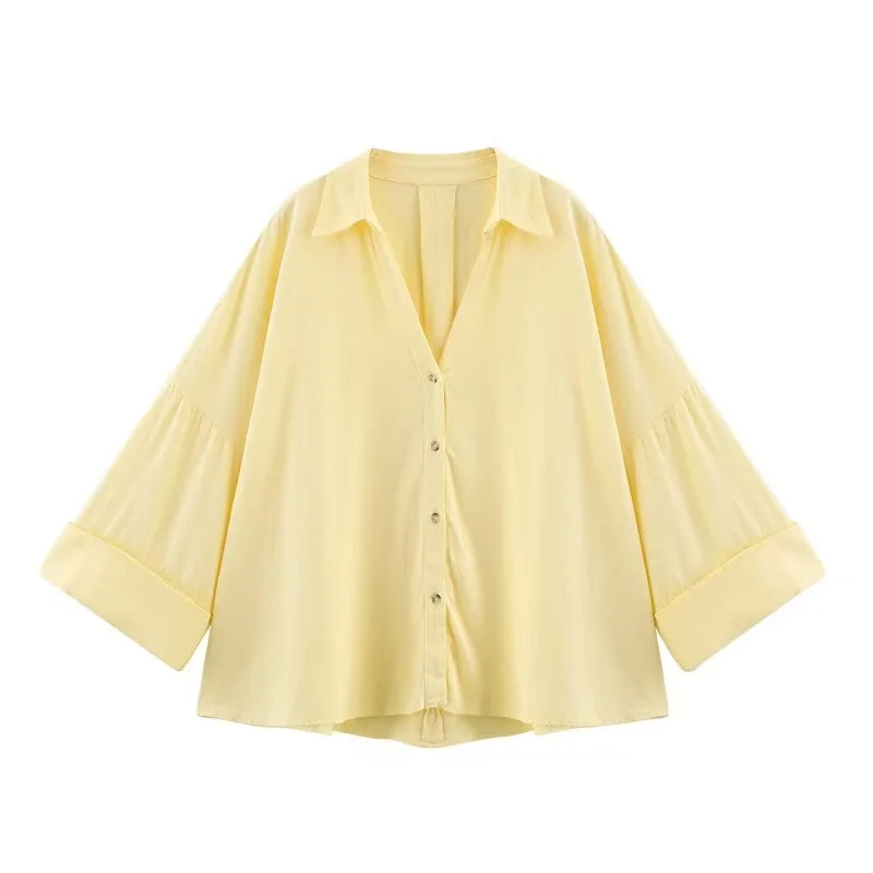 2025 ropa mujer shirts & blouses Female clothing Summer Yellow White Striped Shirt Elegant Large Size Long Sleeve Shirts