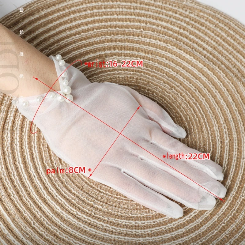 Short Wedding Gloves with Pearls Simple Stylish Design for Travel Photography Studio Full Finger Bridal Gloves