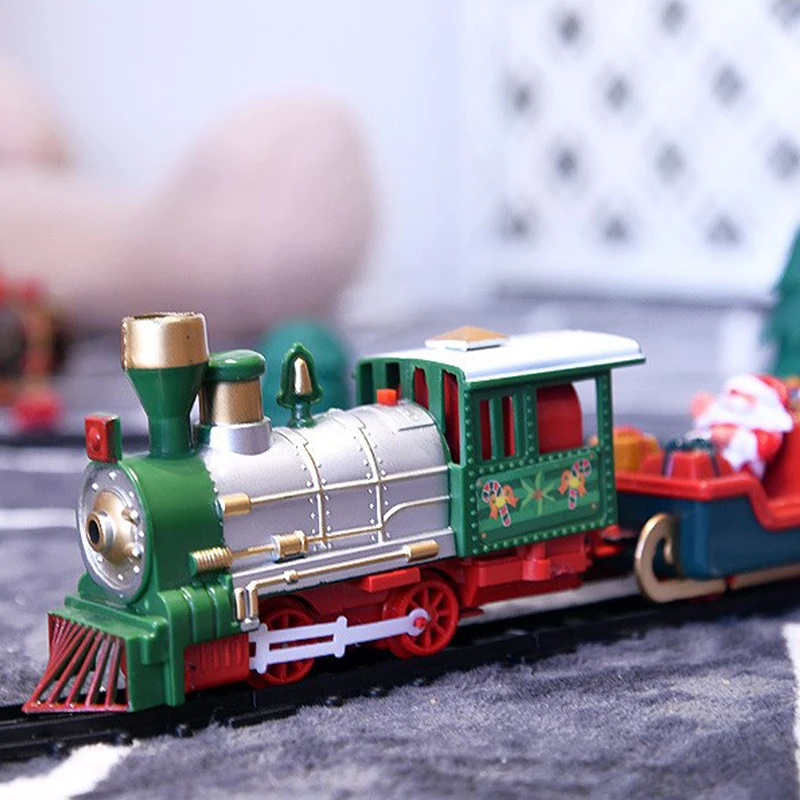 Christmas Train Electric Toys Christmas Tree Decoration Train Track Frame Railway Car with Sound&Light Rail Car Christmas Gifts