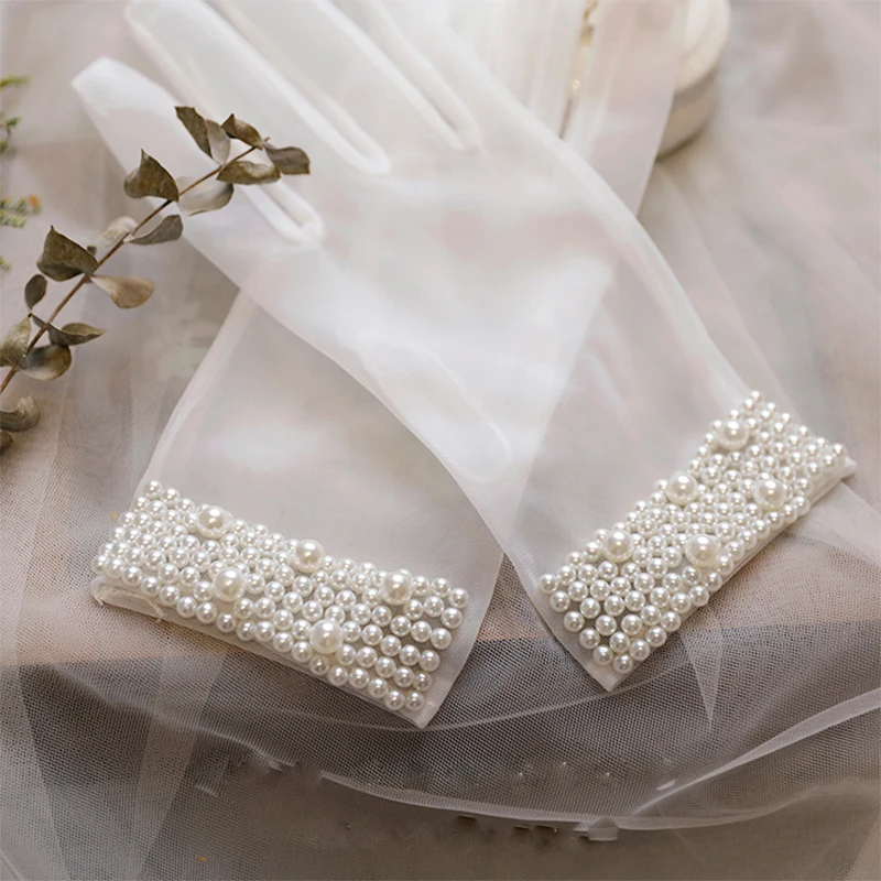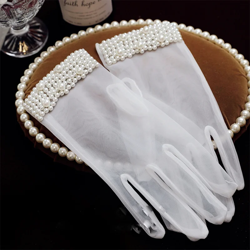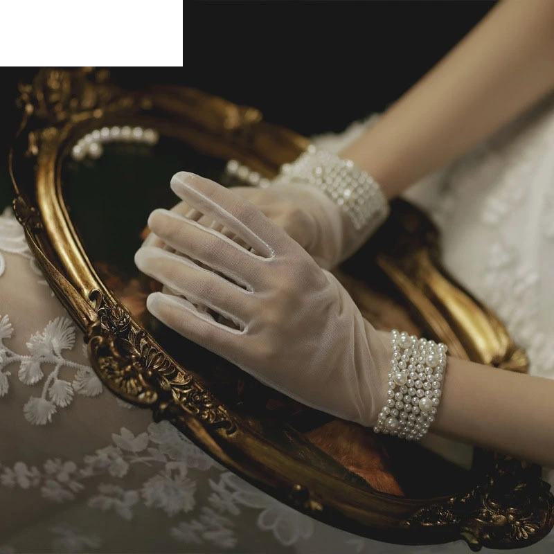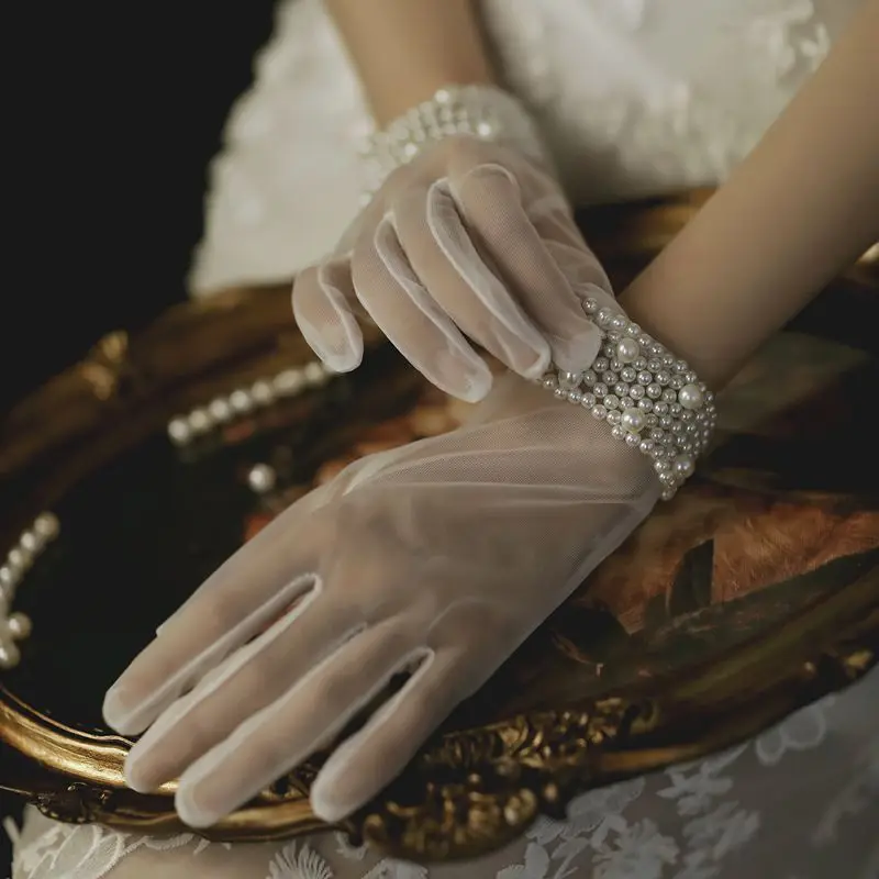 Bridal Pearl Retro wedding gloves versatile wedding dress party accessories aesthetical mesh short photo accessories