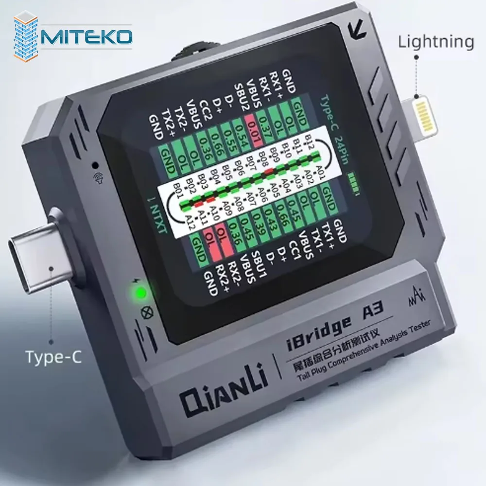 Qianli iBridge A3 Tail Plug Tester Comprehensive Analysis Type-C Lightning Interface Auto-scan IPhone Samsung Diagnostic Tool