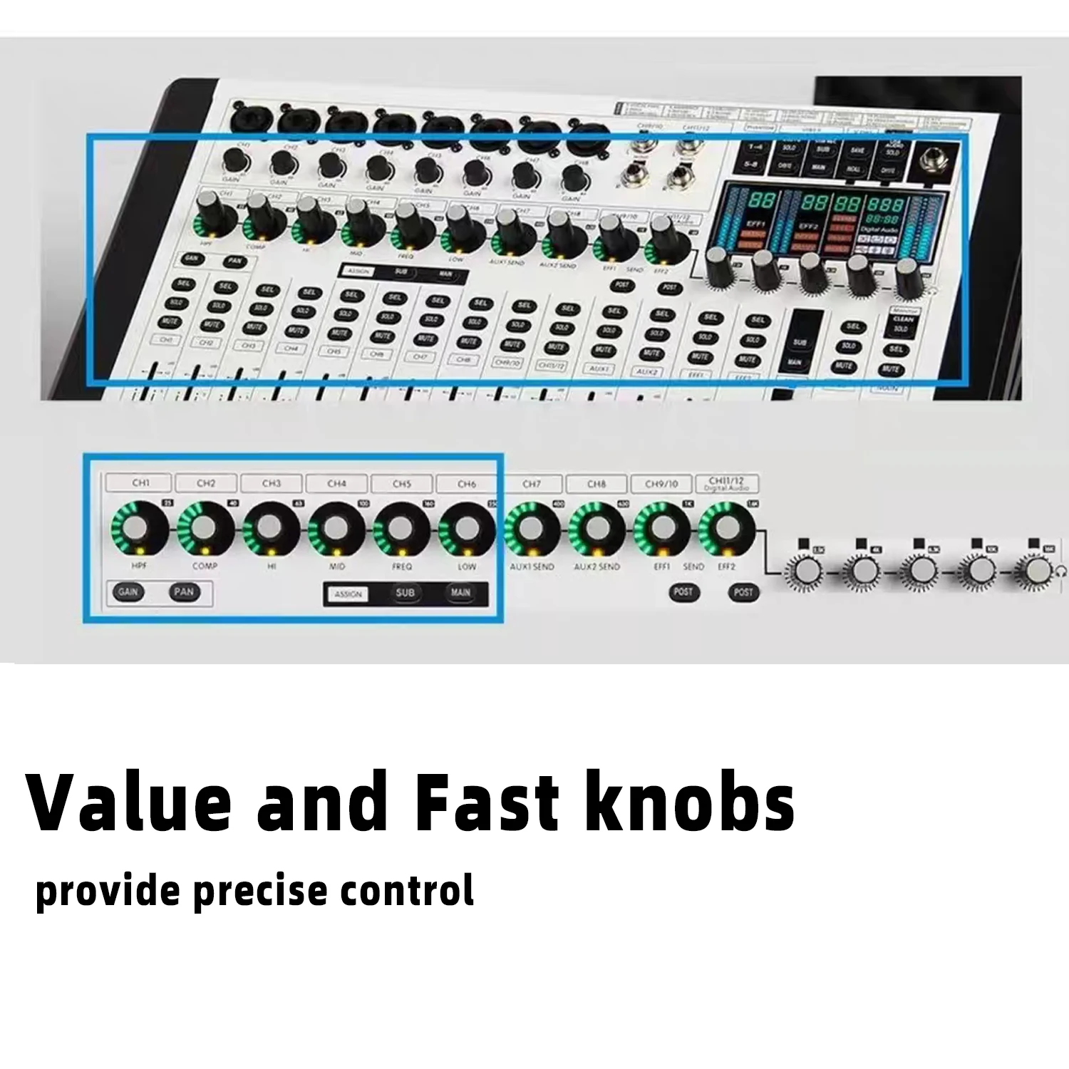 GAX-D12 Professional 12 Channel Digital Audio Mixer DJ Console Build In Soundcard PA Sound System