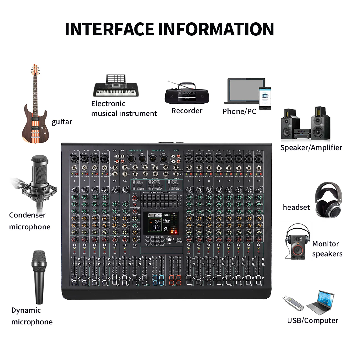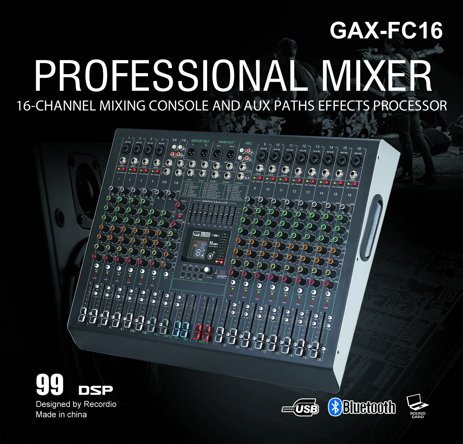 GAX-FC16 Factory Wholesale Professional Mixing Console 8/12/16/24 Channel Stage Performance Phantom Power Mixer Mixing Console