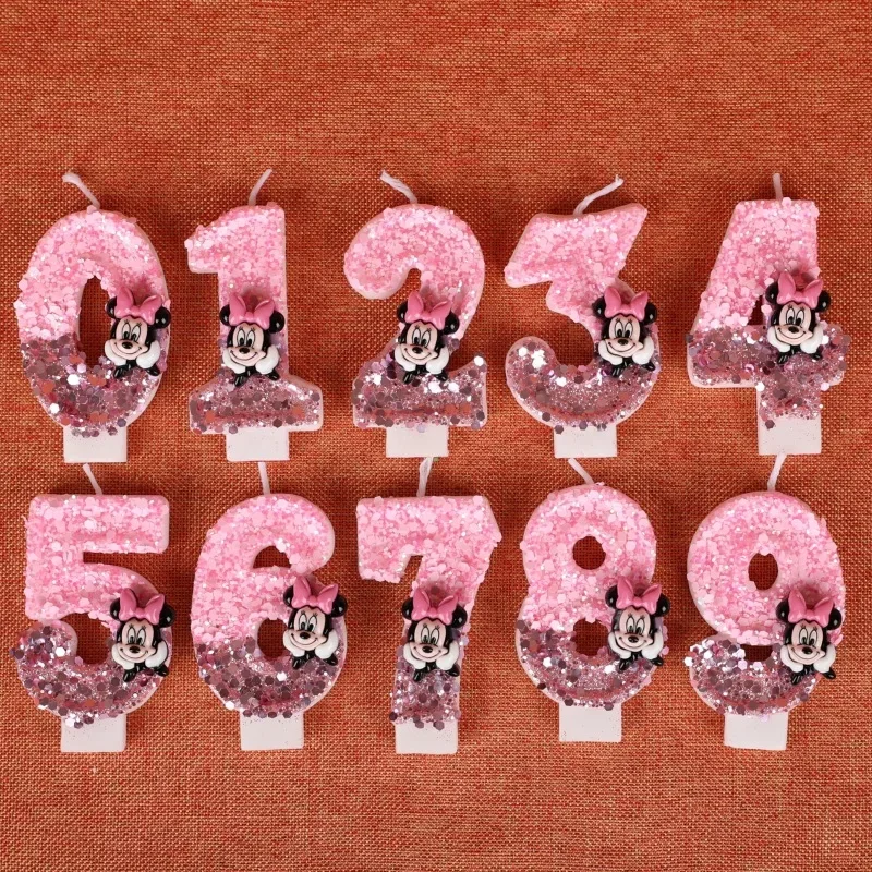 Hot Happy Birthday Number 0-9 Candles Cartoon Mickey Minnie Mouse Candle Cake Cupcake Topper Party Decoration Supplies DIY Gifts