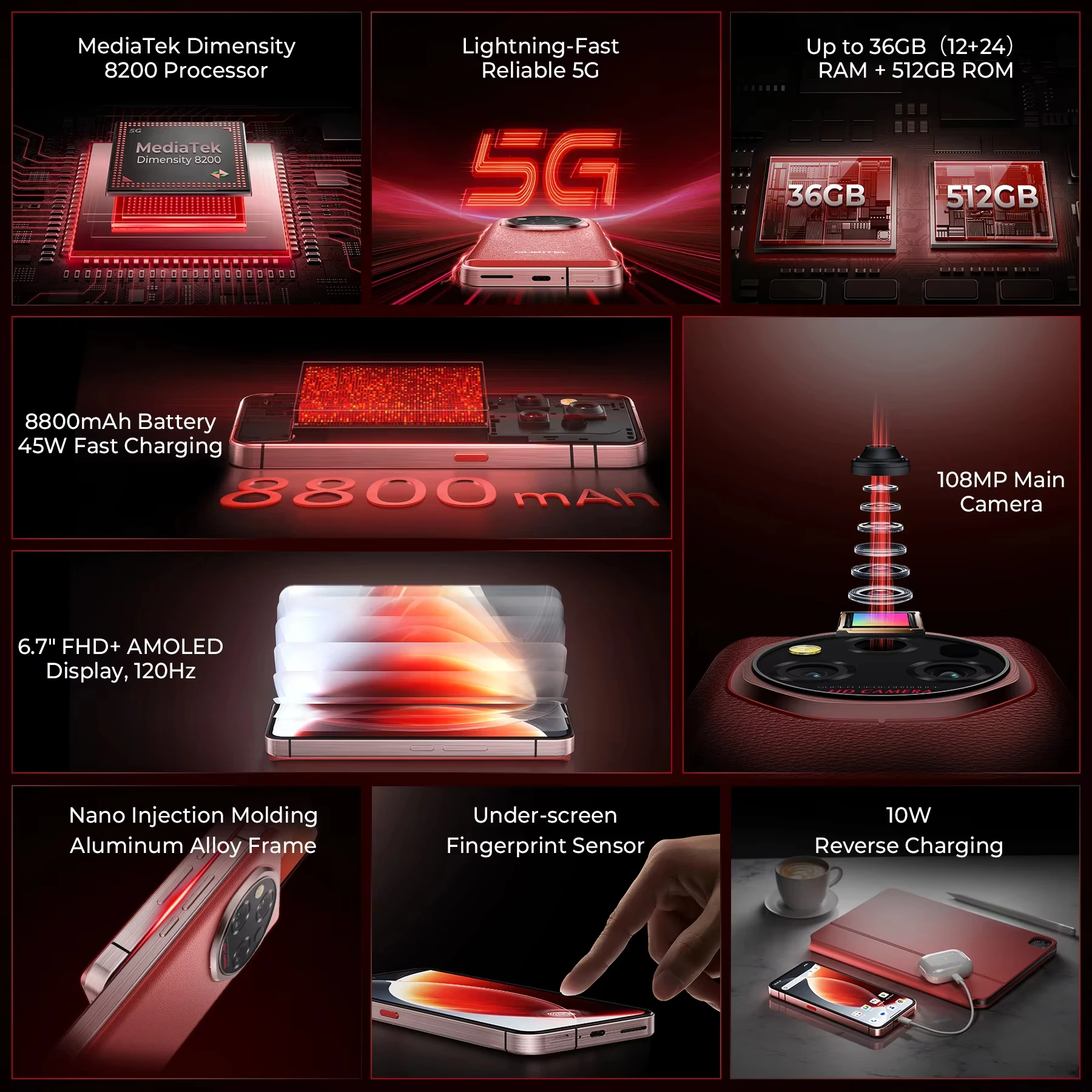 OUKITEL WP210 5G Rugged Phone 6.56'' Display 120Hz Cell Phone 36GB+512GB 45W, Telephone Portable 8800mAh Smartphon Android 15 NFC