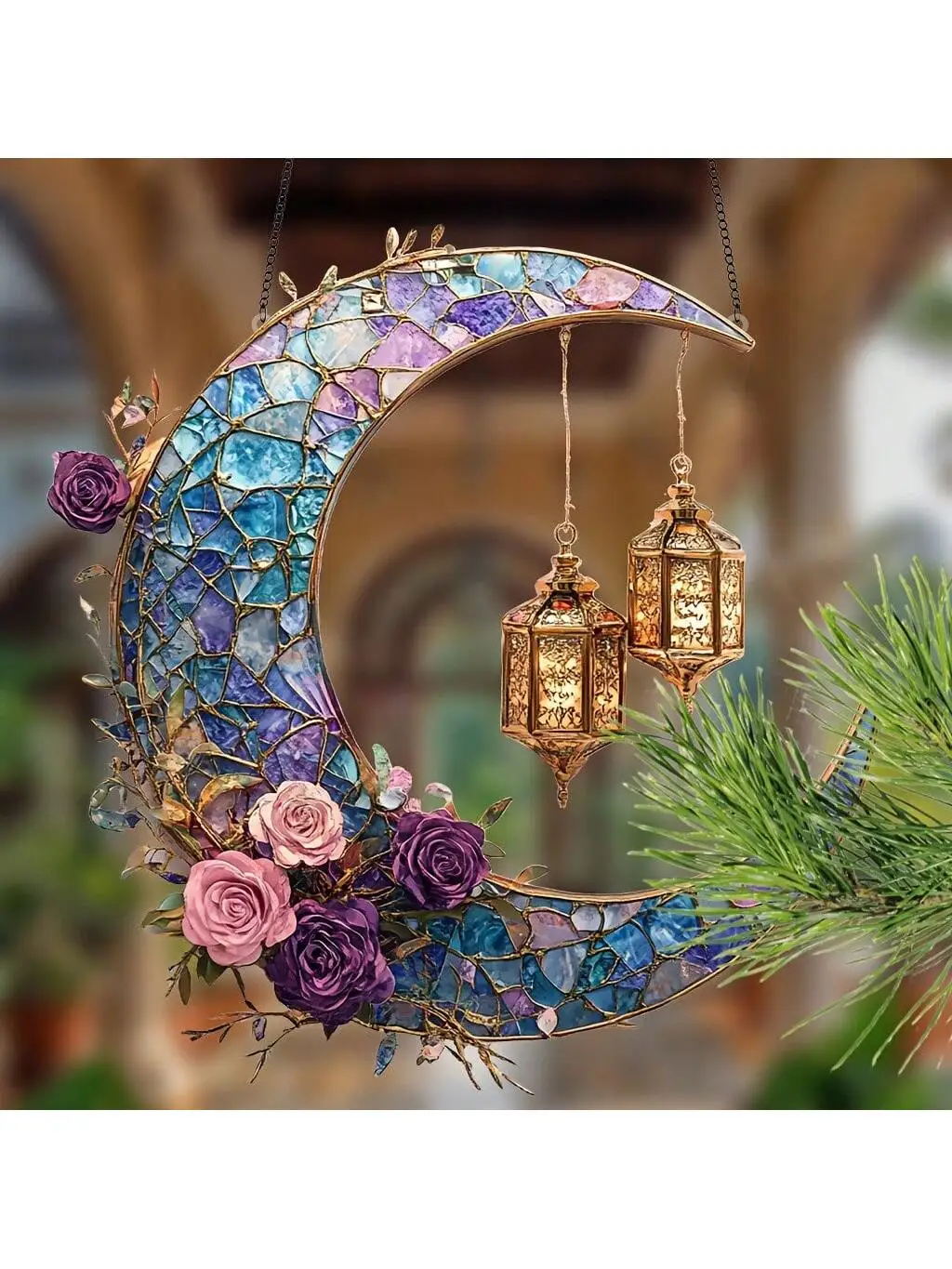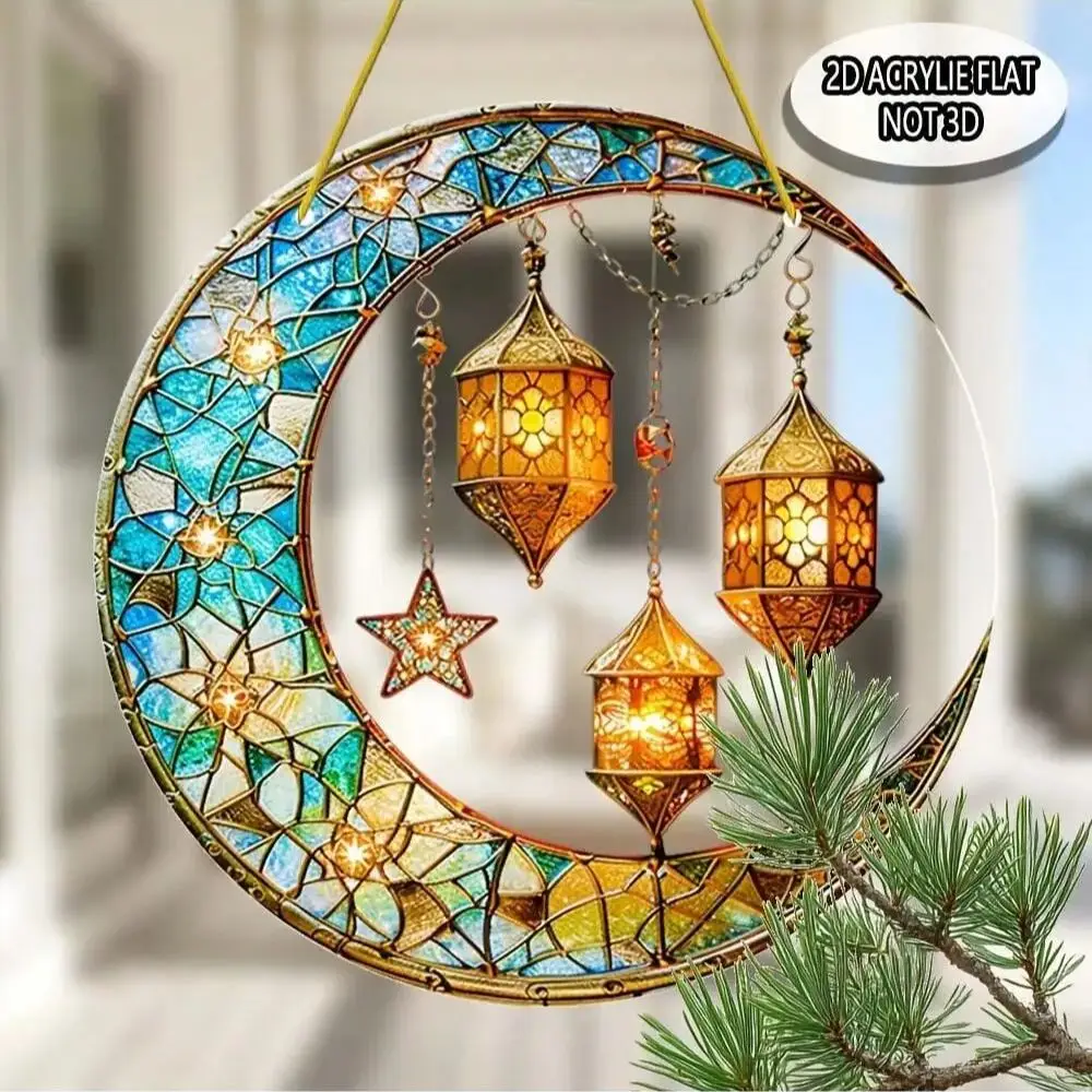Colorful moon lamp sun catcher, suitable for window hanging decoration, gifts for religious women, Ramadan decoration,