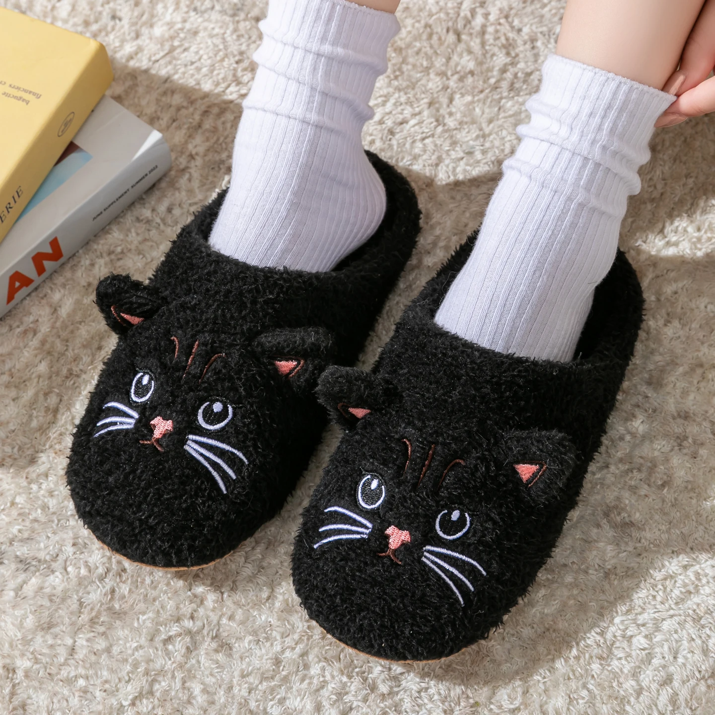 Women's Cartoon Cat Plush Slippers Cozy Winter Bedroom House Shoes with Non-Slip Soft Sole for Indoor Comfort Home Warm Shoes